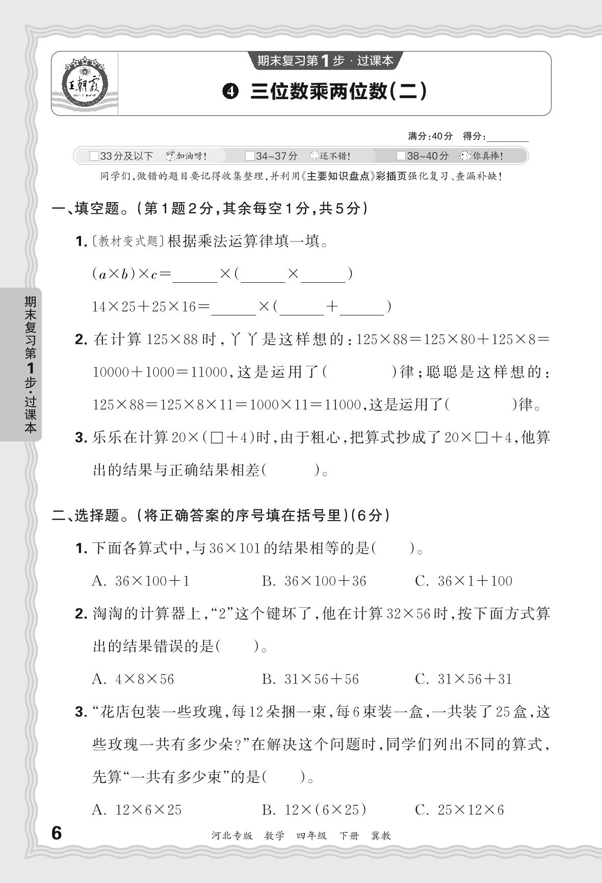 2024春下册四年级数学冀教版 期末过课本河北版·三位数乘两位数(二)【4】