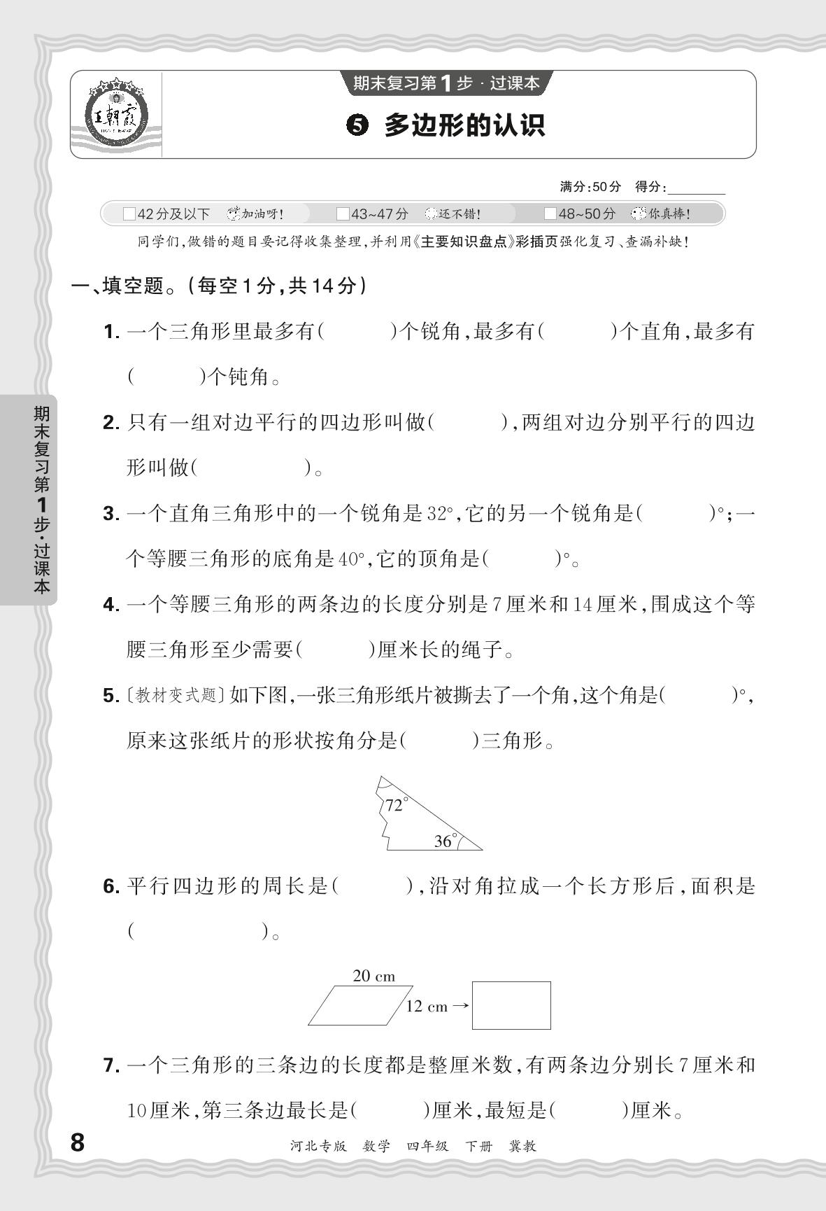 2024春下册四年级数学冀教版 期末过课本河北版·多边形的认识【5】
