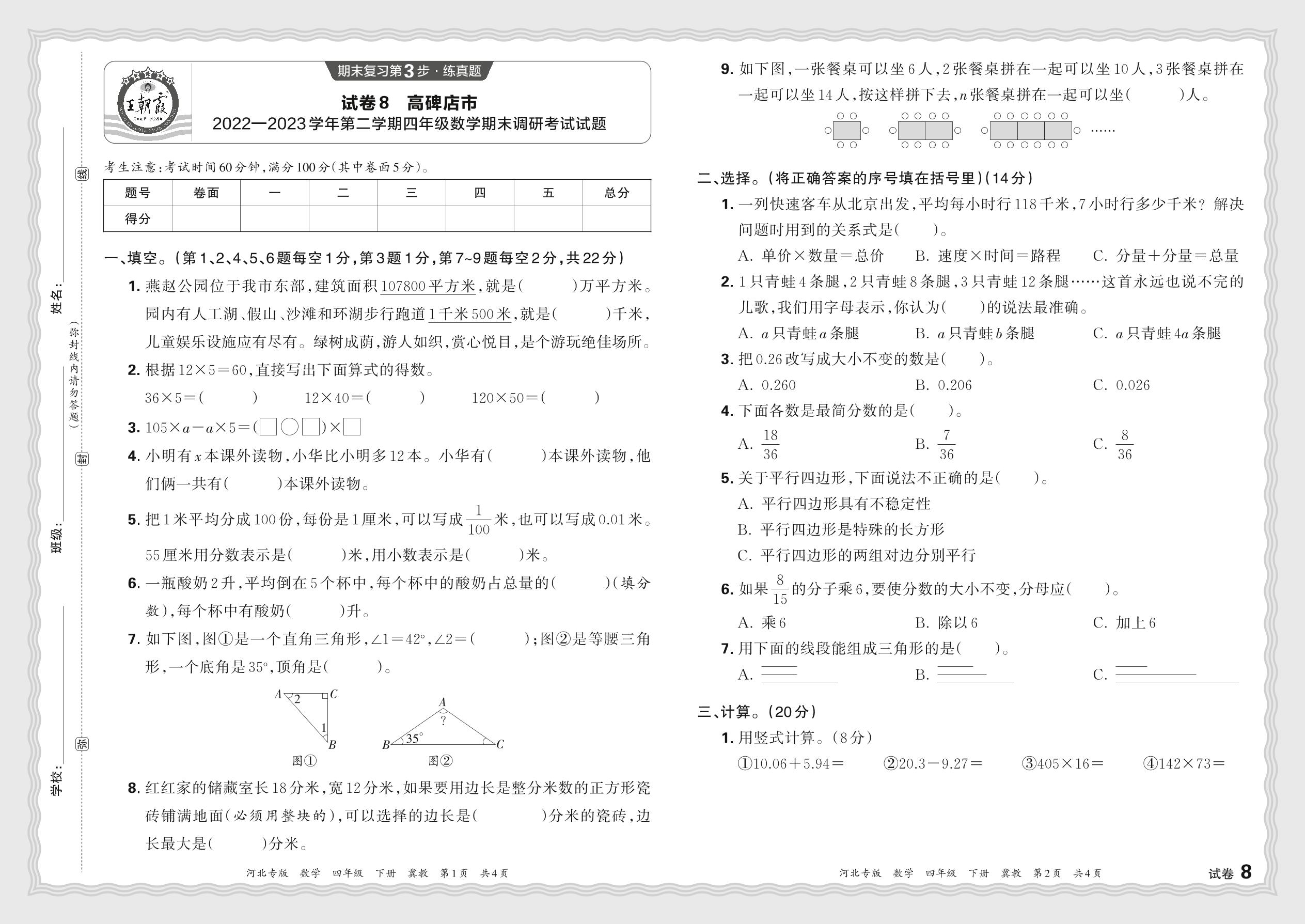 河北省保定市高碑店市2022—2023学年第二学期四年级数学期末调研考试试题(冀教版)【8】