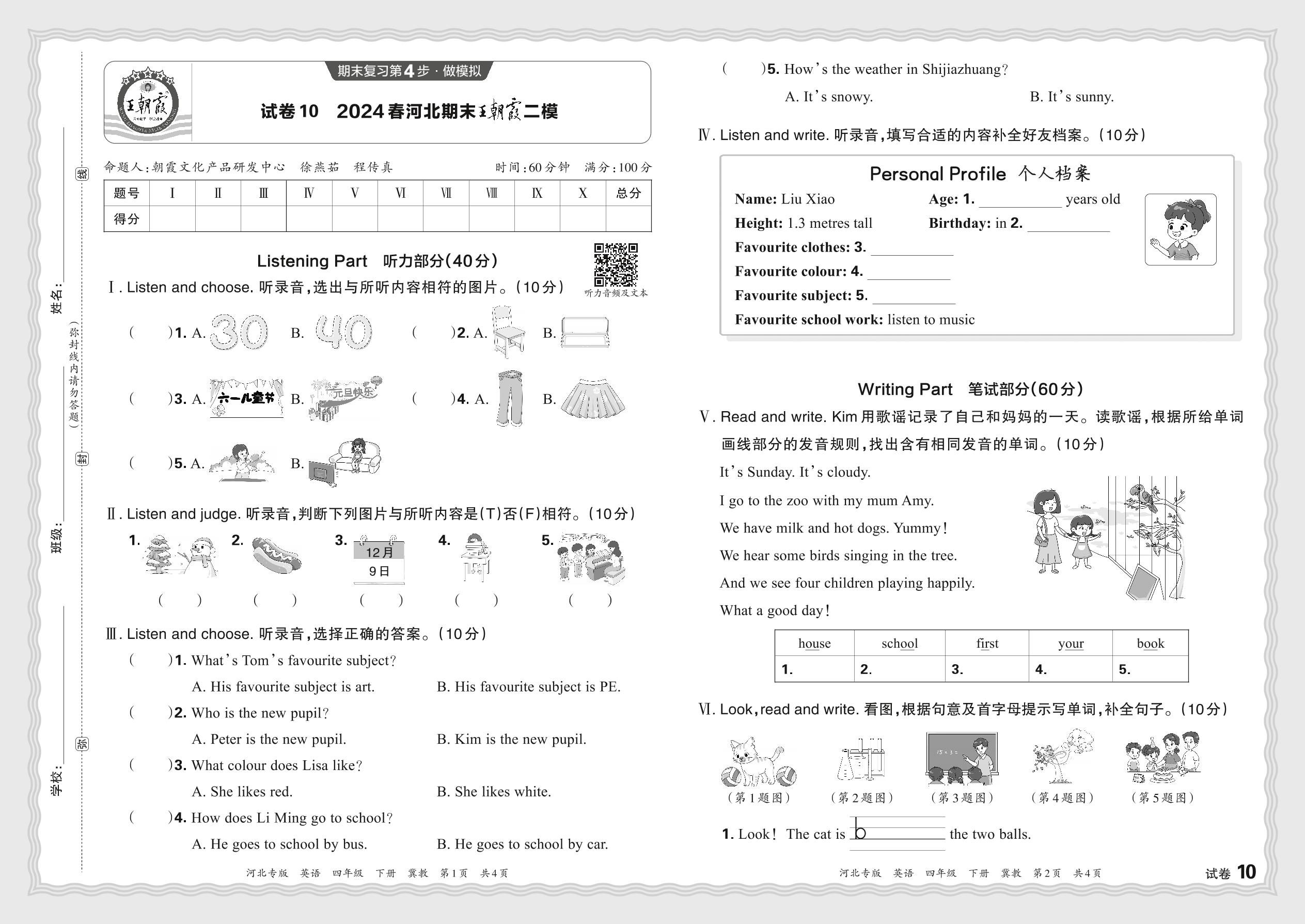 2024春下册四年级英语冀教版 河北期末王朝霞二模