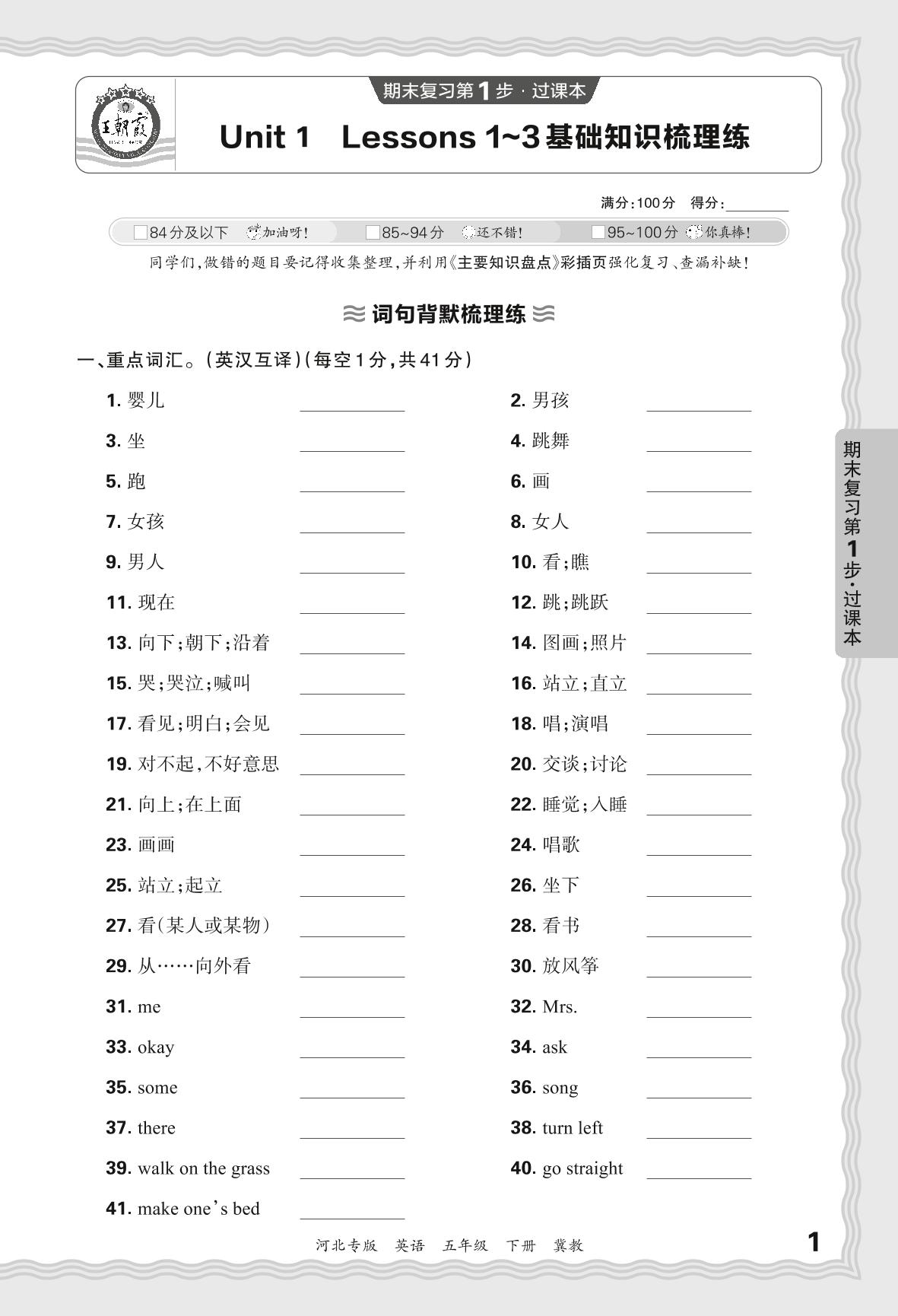 2024春下册五年级英语冀教版 期末过课本河北版·Unit 1 Lessons 1~3 基础知识梳理练