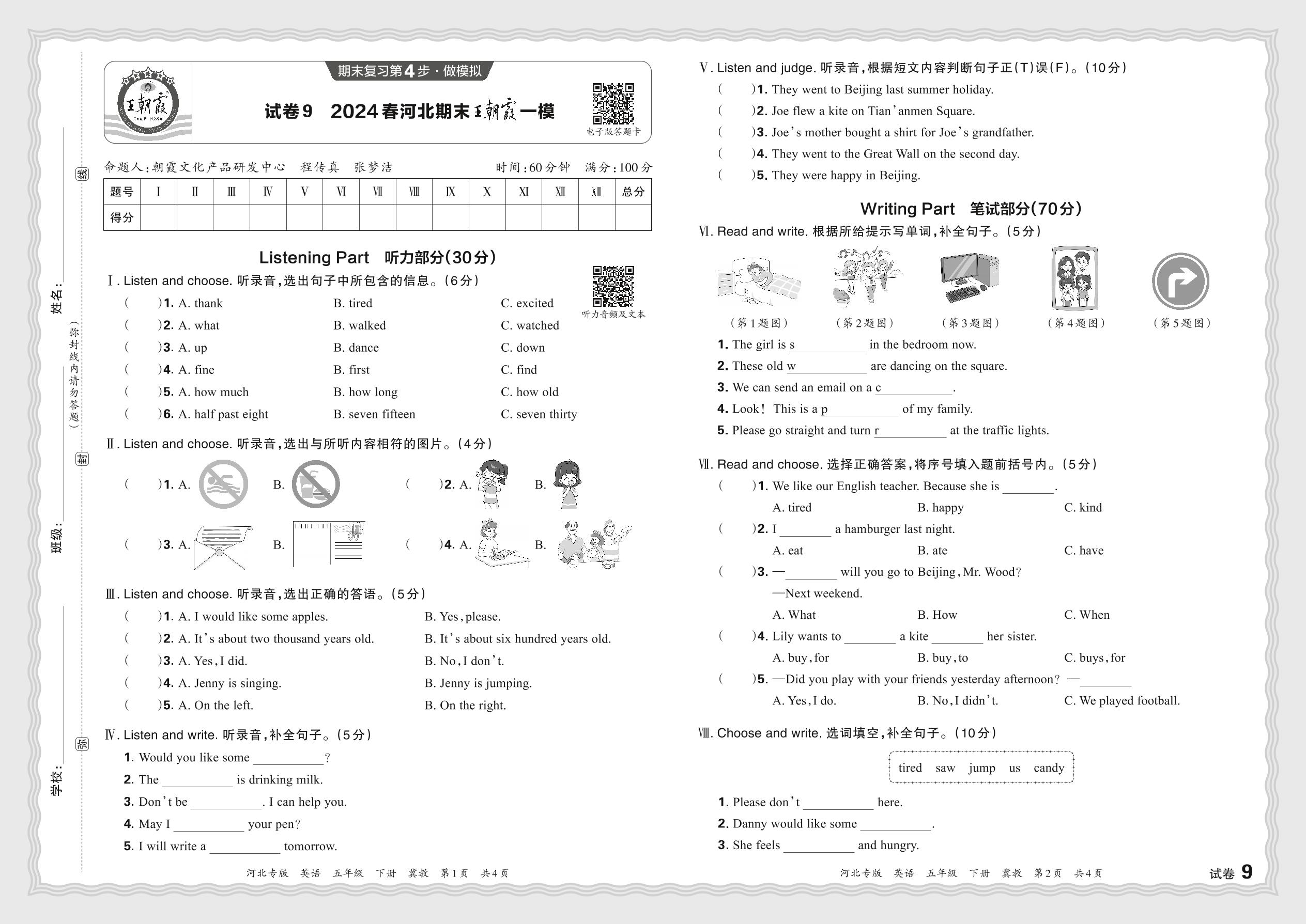 2024春下册五年级英语冀教版 河北期末王朝霞一模