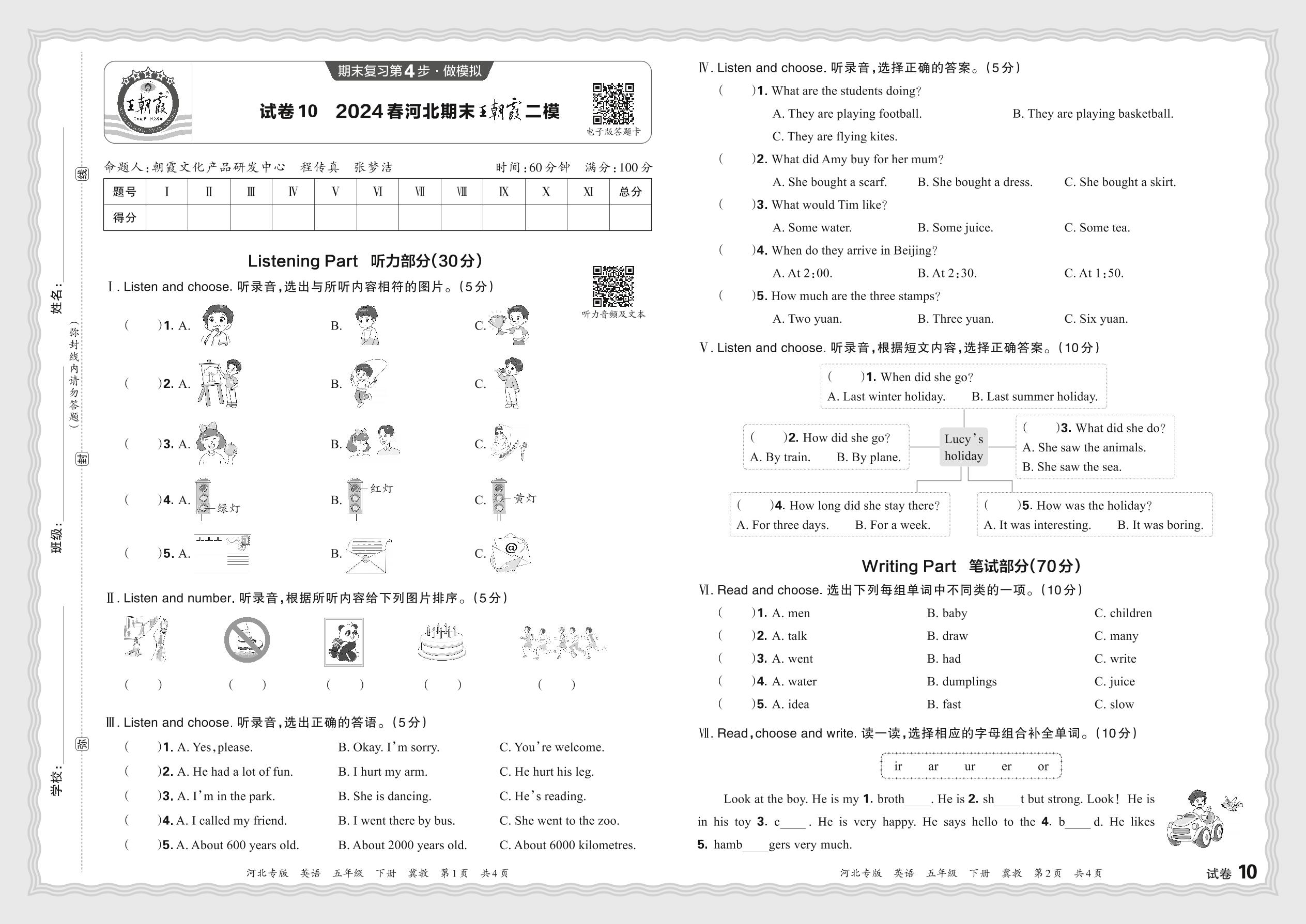 2024春下册五年级英语冀教版 河北期末王朝霞二模