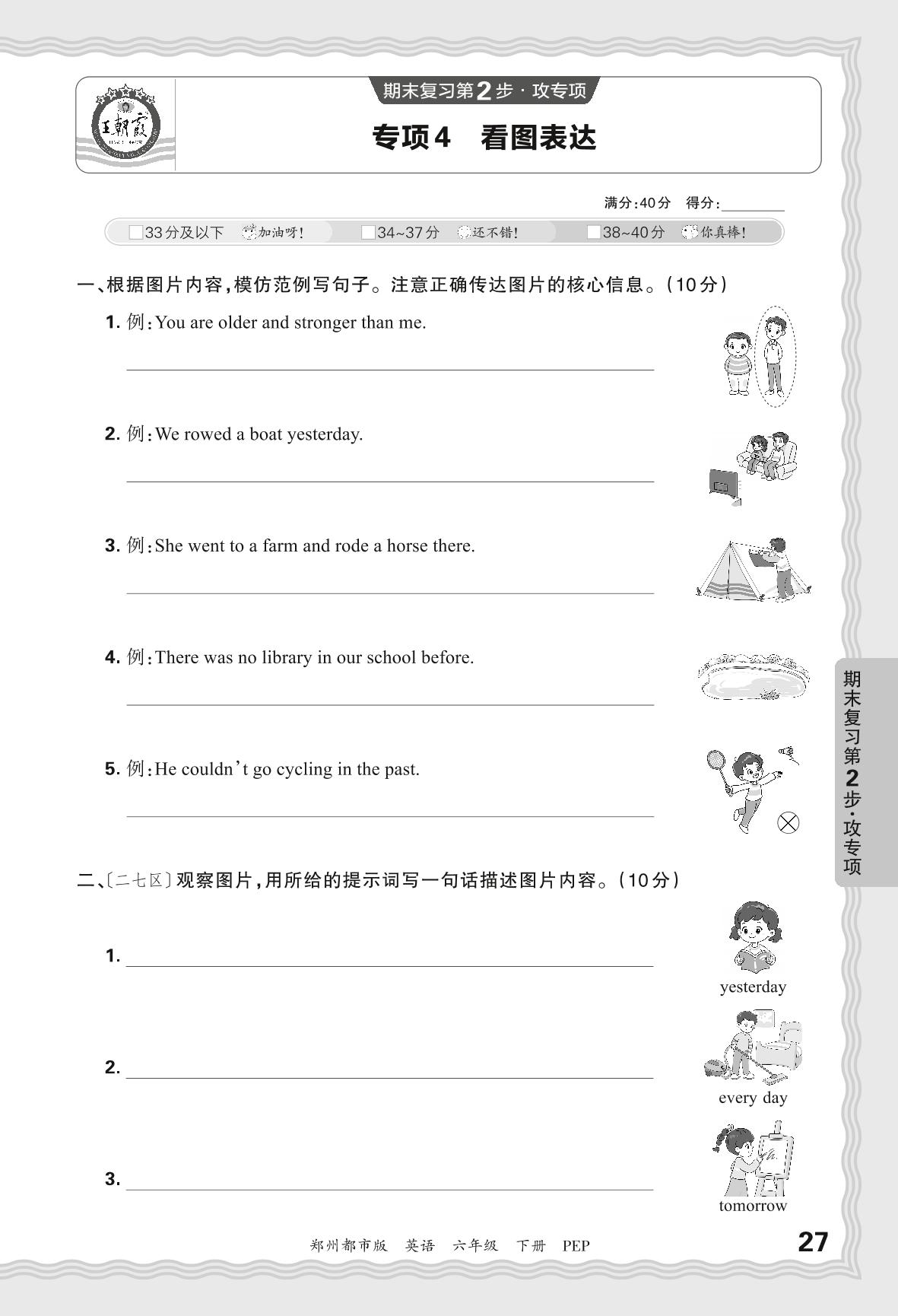 2024春下册六年级英语人教PEP版 期末专项卷郑州版·看图表达【4】