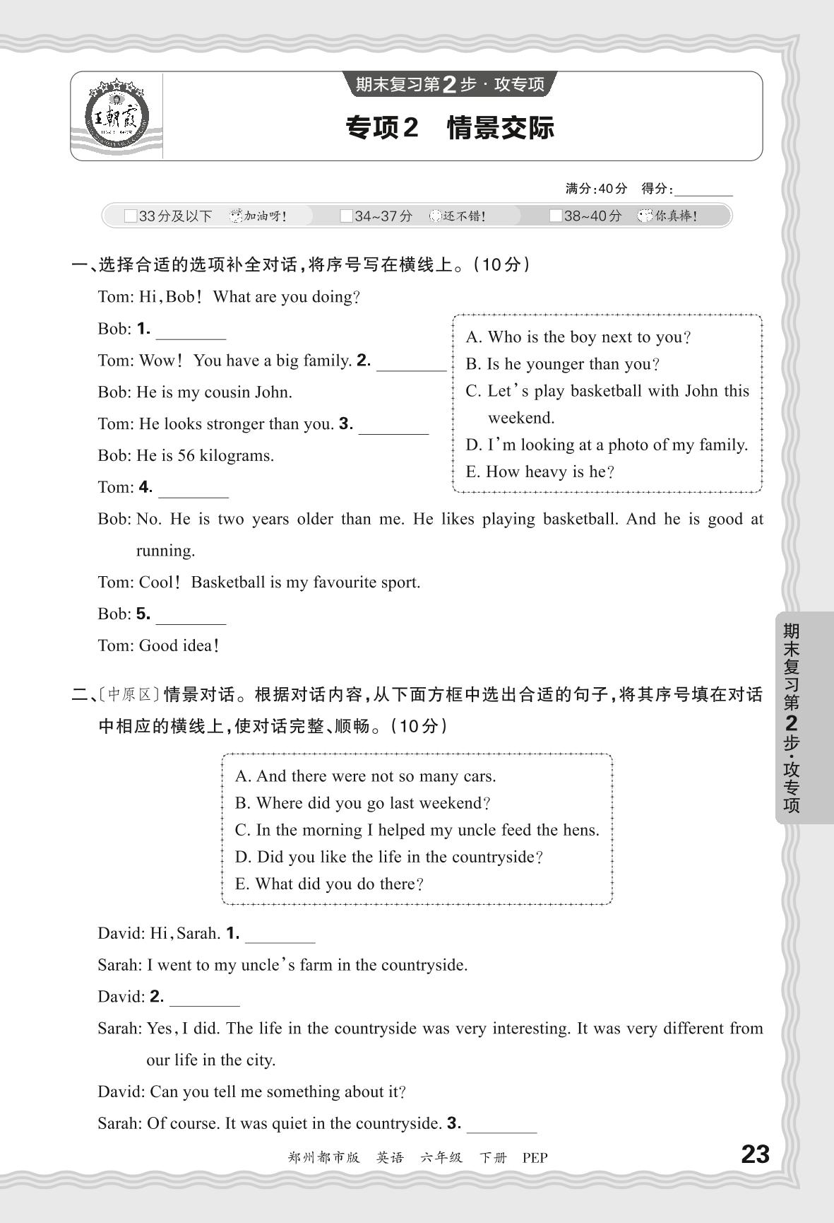 2024春下册六年级英语人教PEP版 期末专项卷郑州版·情景交际【2】