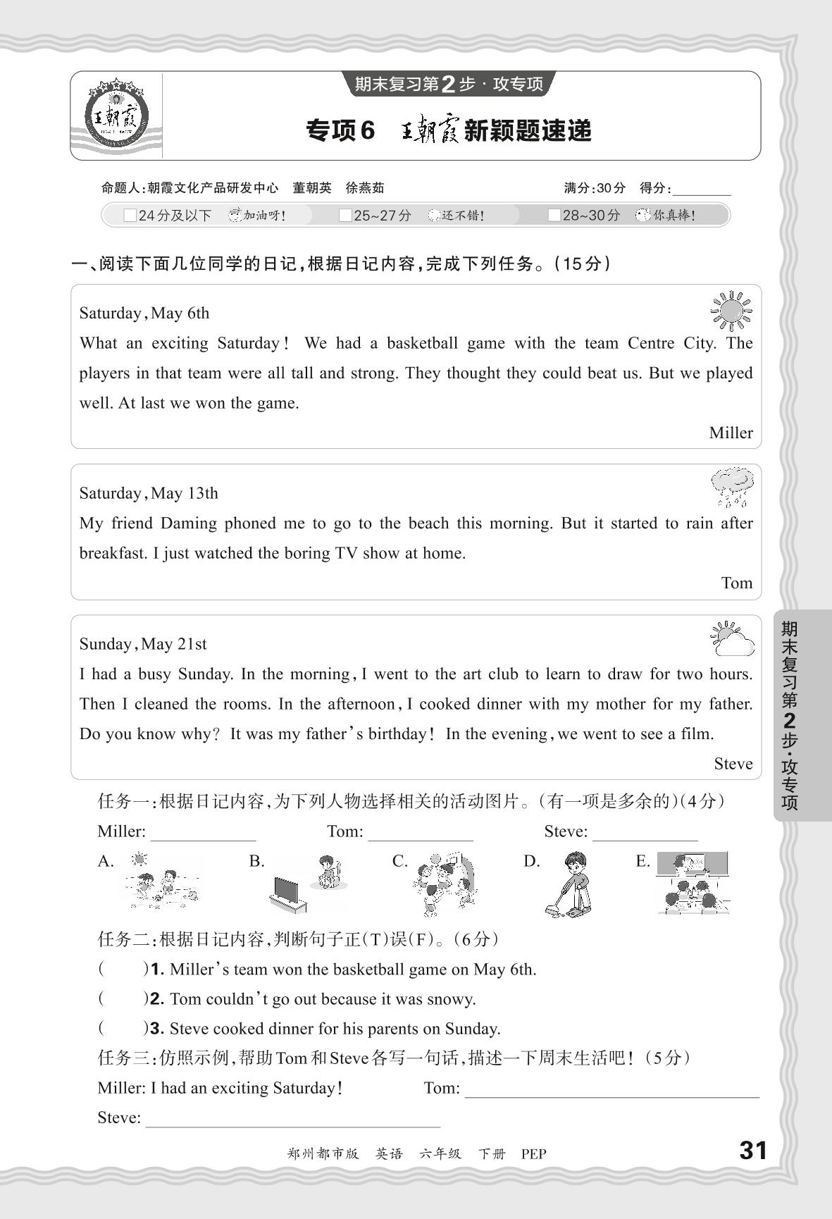 2024春下册六年级英语人教PEP版 期末专项卷郑州版·王朝霞新颖题速递——任务型阅读【6】
