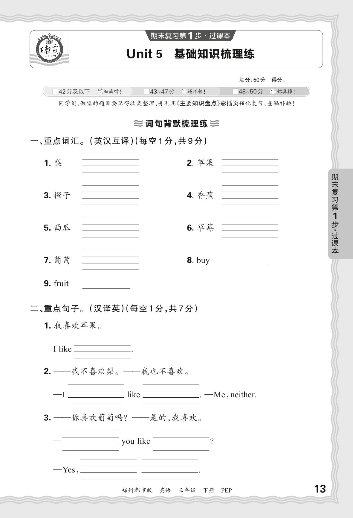2024春下册三年级英语人教PEP版 期末过课本郑州版·Unit 5 基础知识梳理练