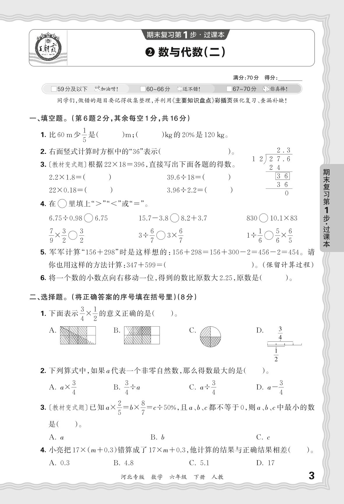 2024春下册六年级数学人教版 期末过课本河北版·数与代数(二)