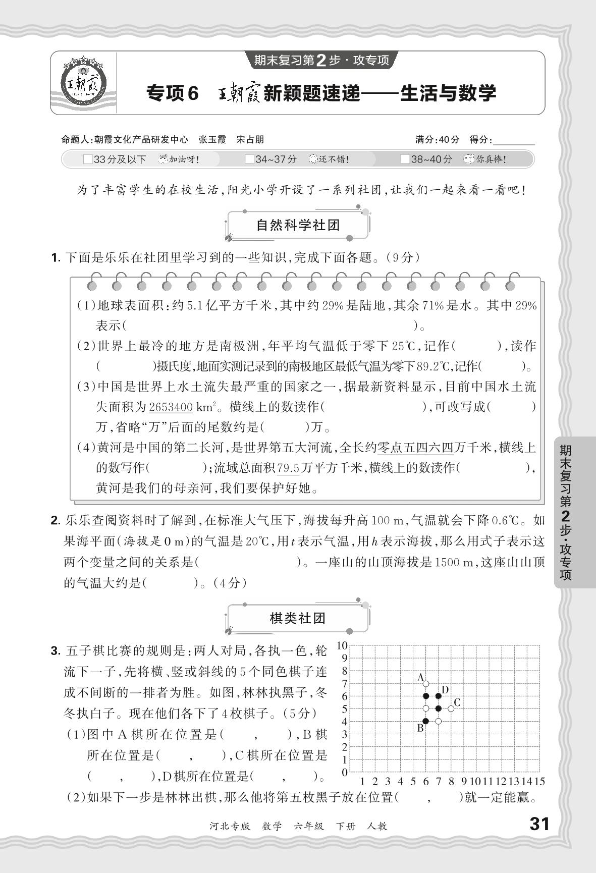 2024春下册六年级数学人教版 期末专项卷河北版·王朝霞新颖题速递——生活与数学【6】