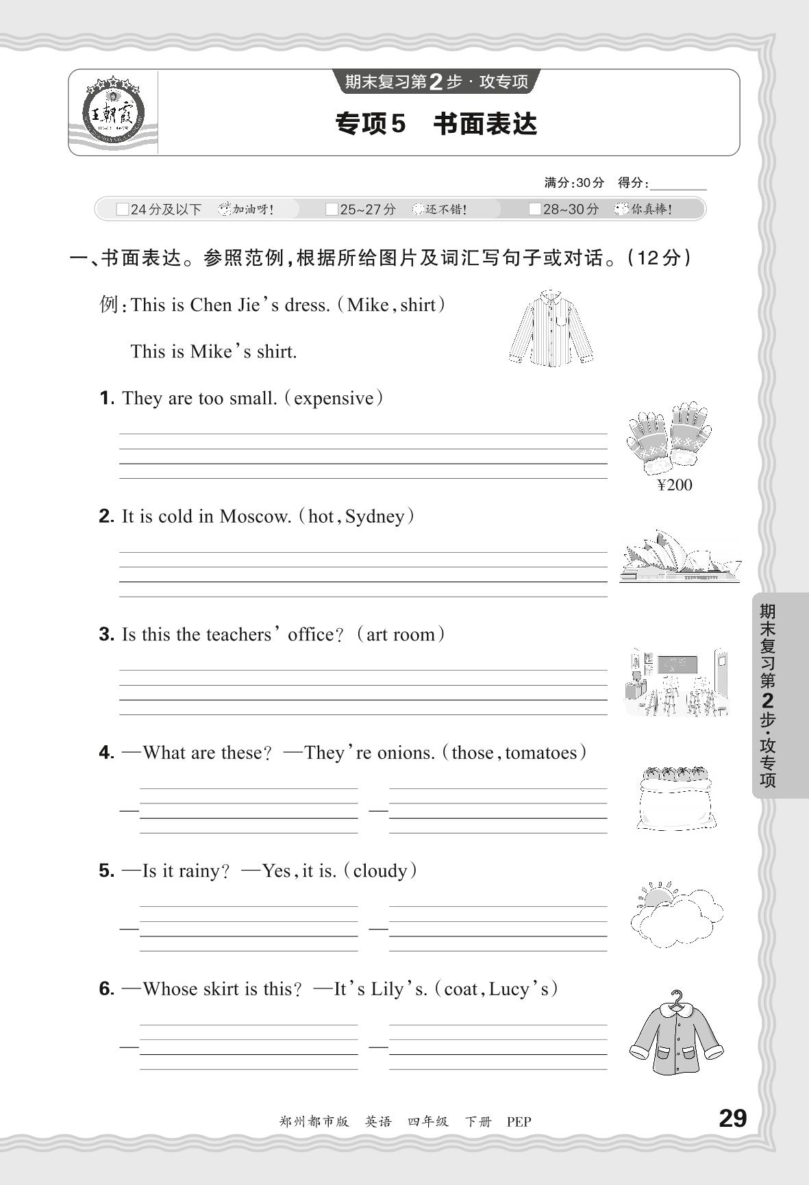 2024春下册四年级英语人教PEP版 期末专项卷郑州版·书面表达【5】
