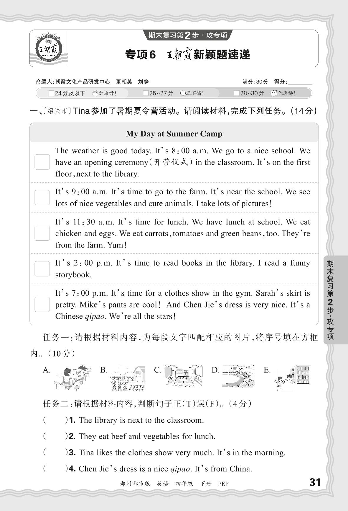 2024春下册四年级英语人教PEP版 期末专项卷郑州版·王朝霞新颖题速递【6】