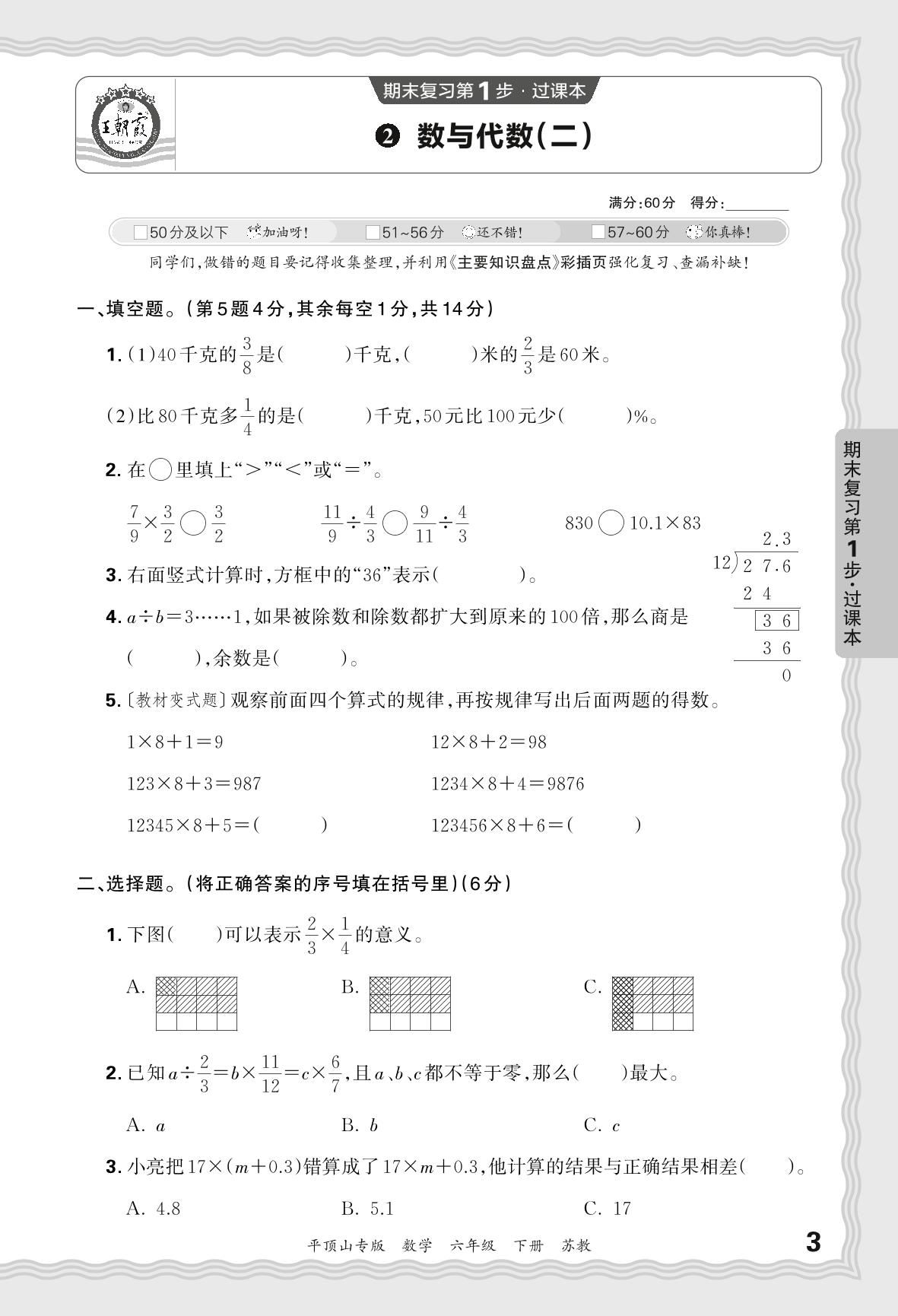 2024春下册六年级数学苏教版 期末过课本平顶山版·数与代数(二)