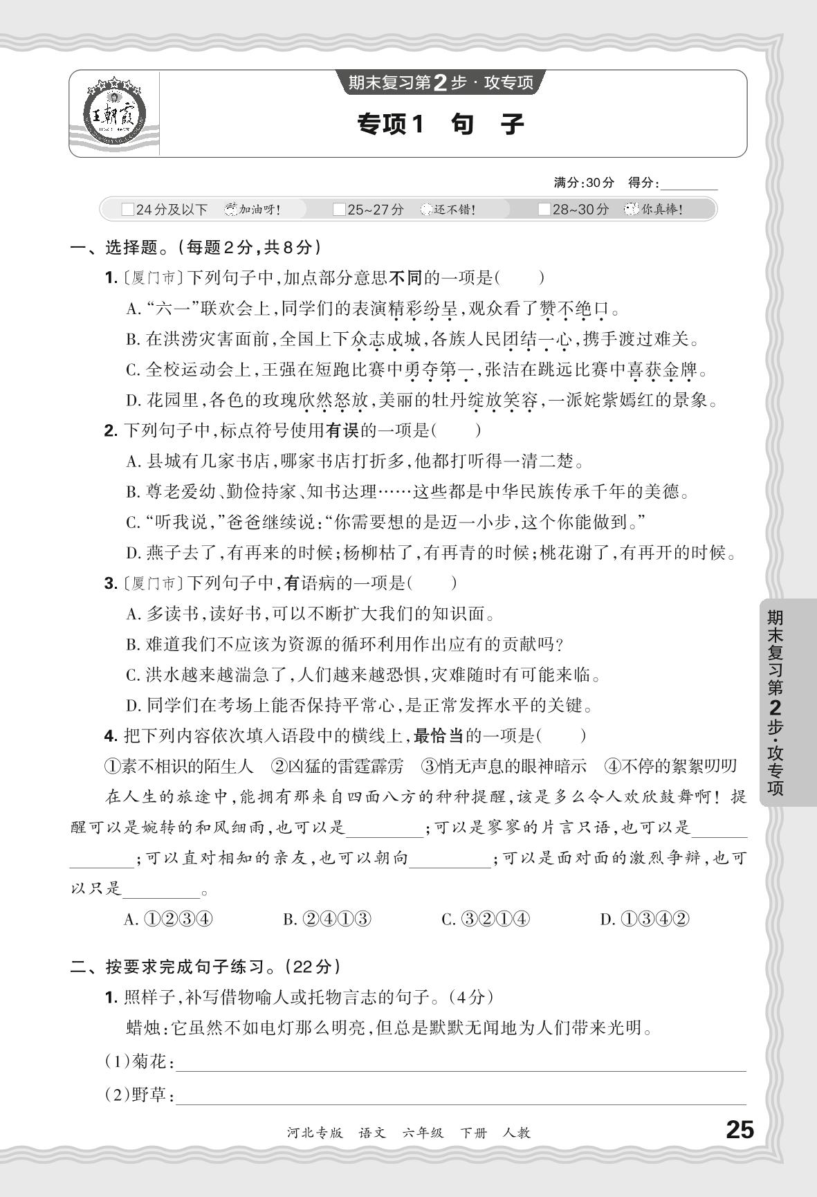 2024春下册六年级语文人教版 期末专项卷河北版·句子【1】
