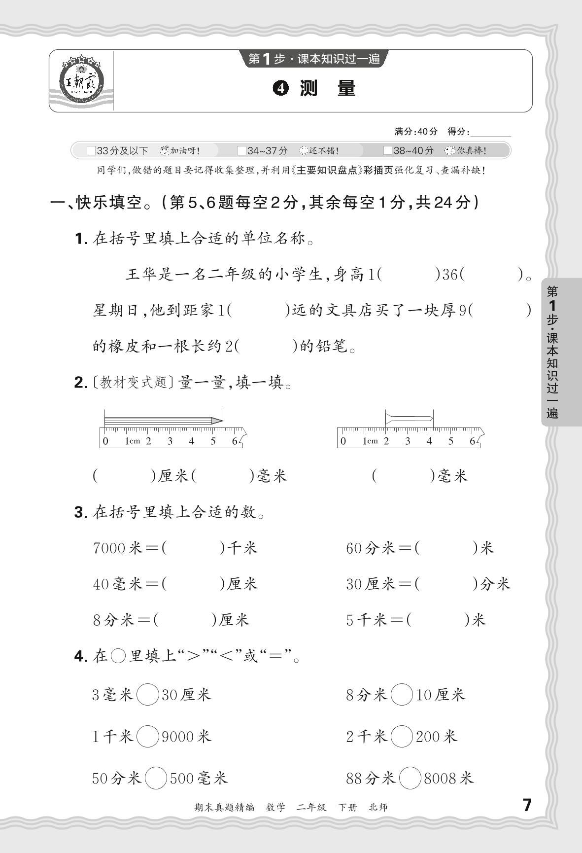 2024春下册二年级数学北师版 期末过课本郑州版·测量【4】