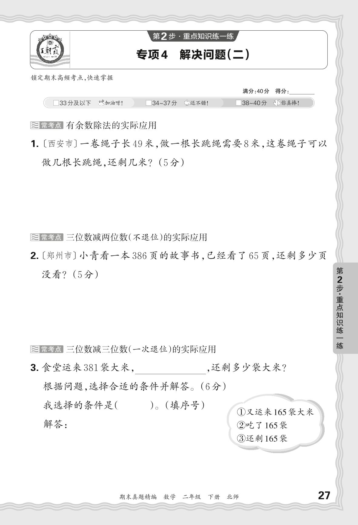 2024春下册二年级数学北师版 期末专项卷郑州版·解决问题(二)【4】