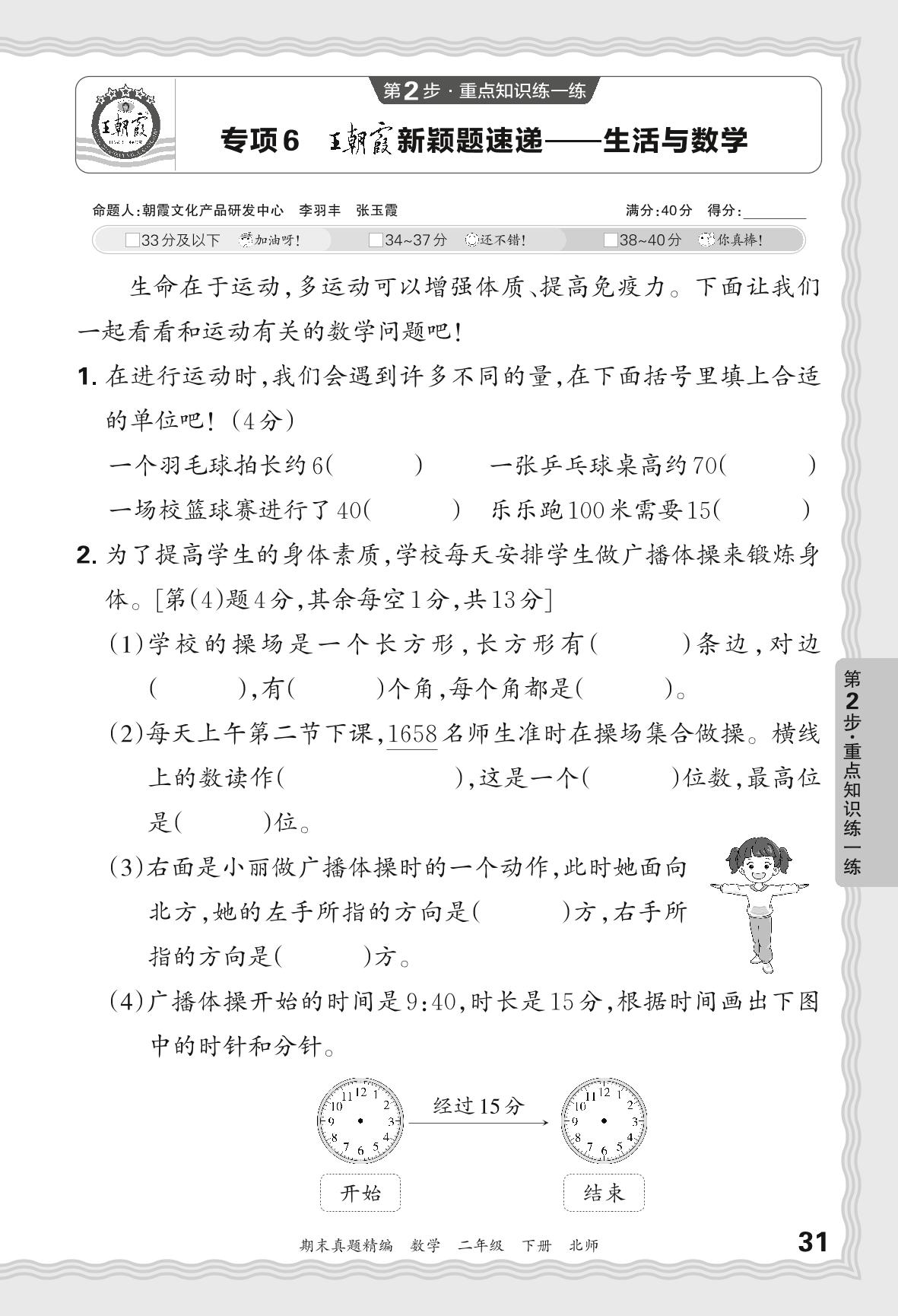 2024春下册二年级数学北师版 期末专项卷郑州版·王朝霞新颖题速递——生活与数学【6】