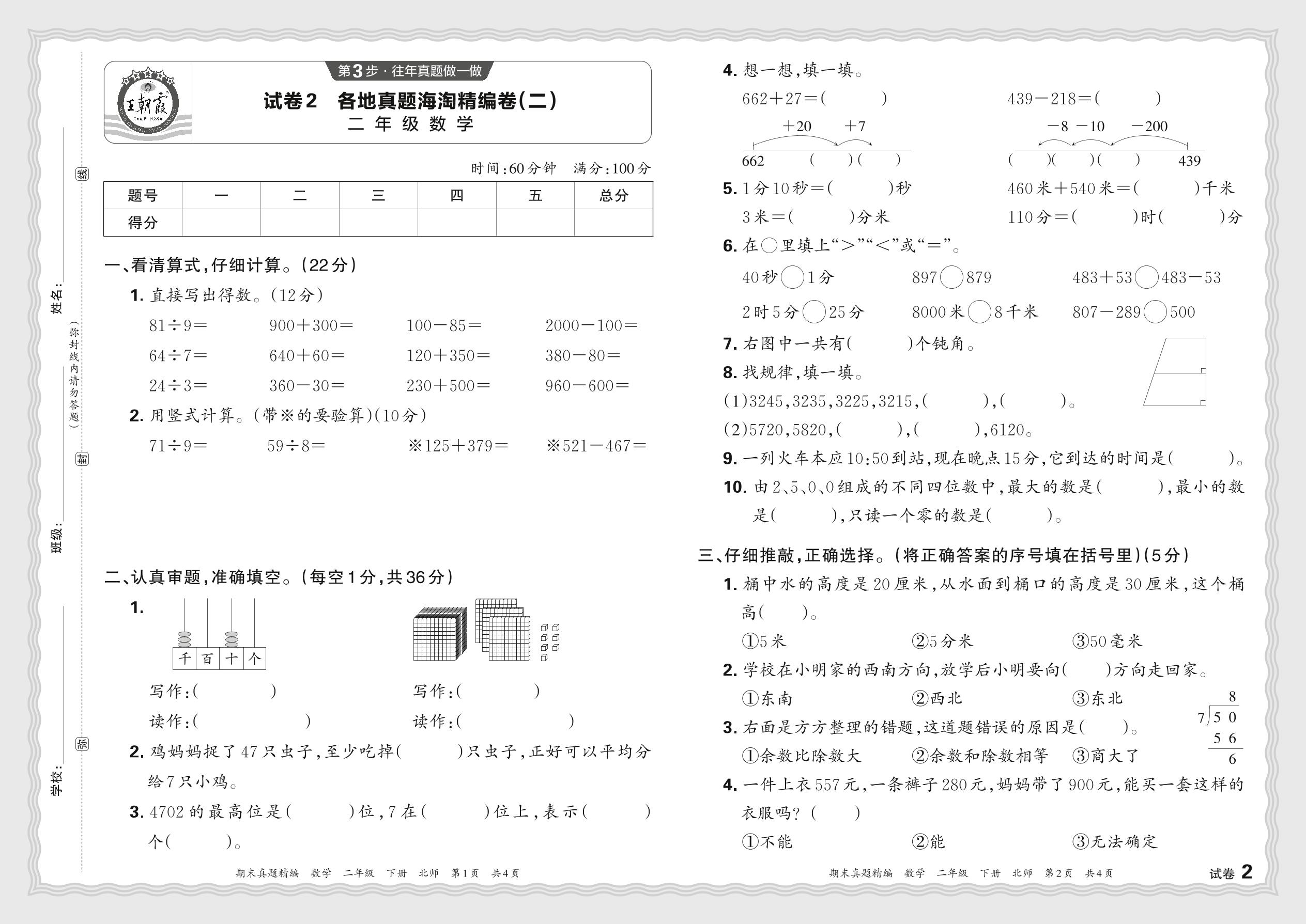 2024春下册二年级数学北师版 各地真题海淘精编卷(二)
