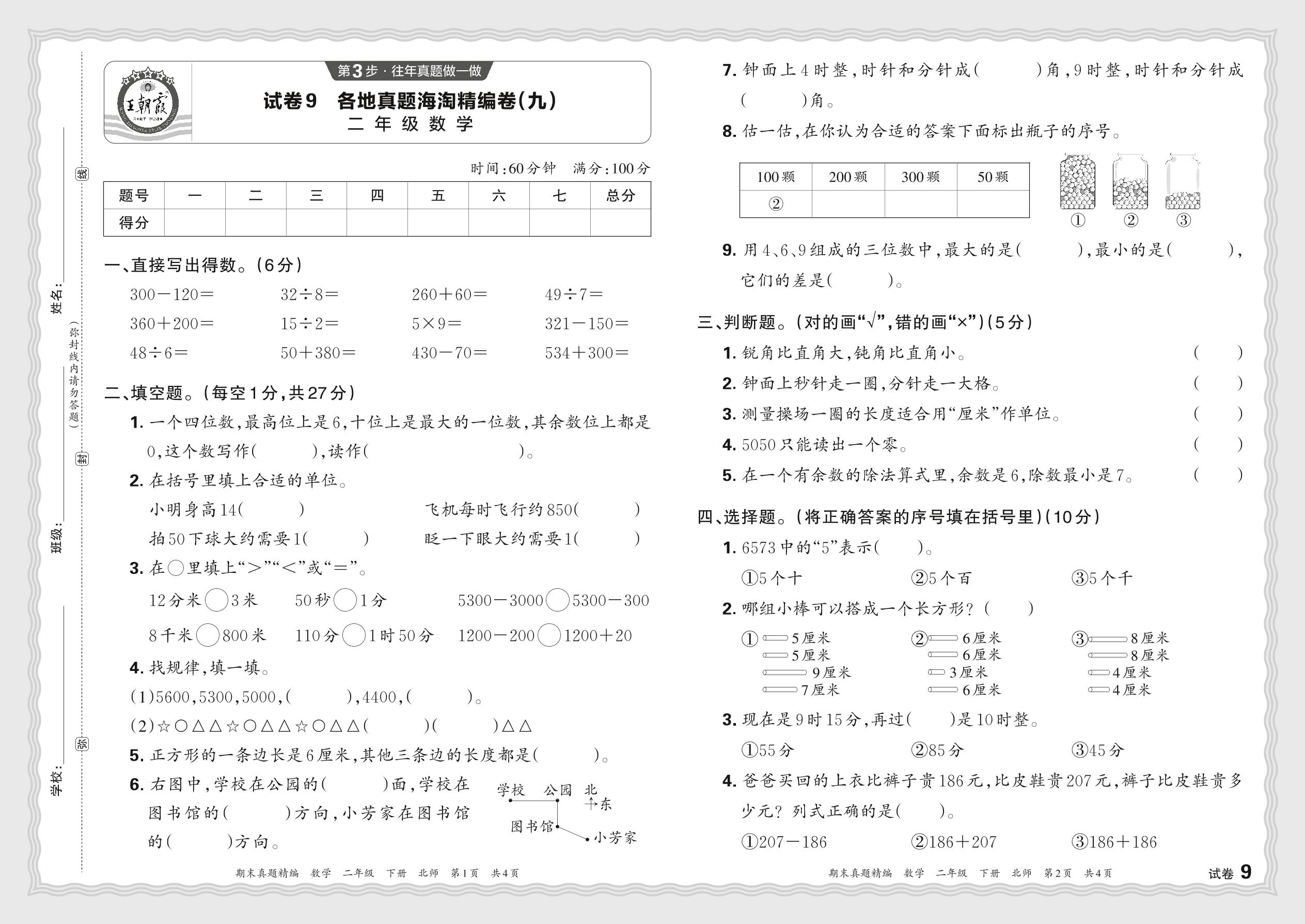 2024春下册二年级数学北师版 各地真题海淘精编卷(九)