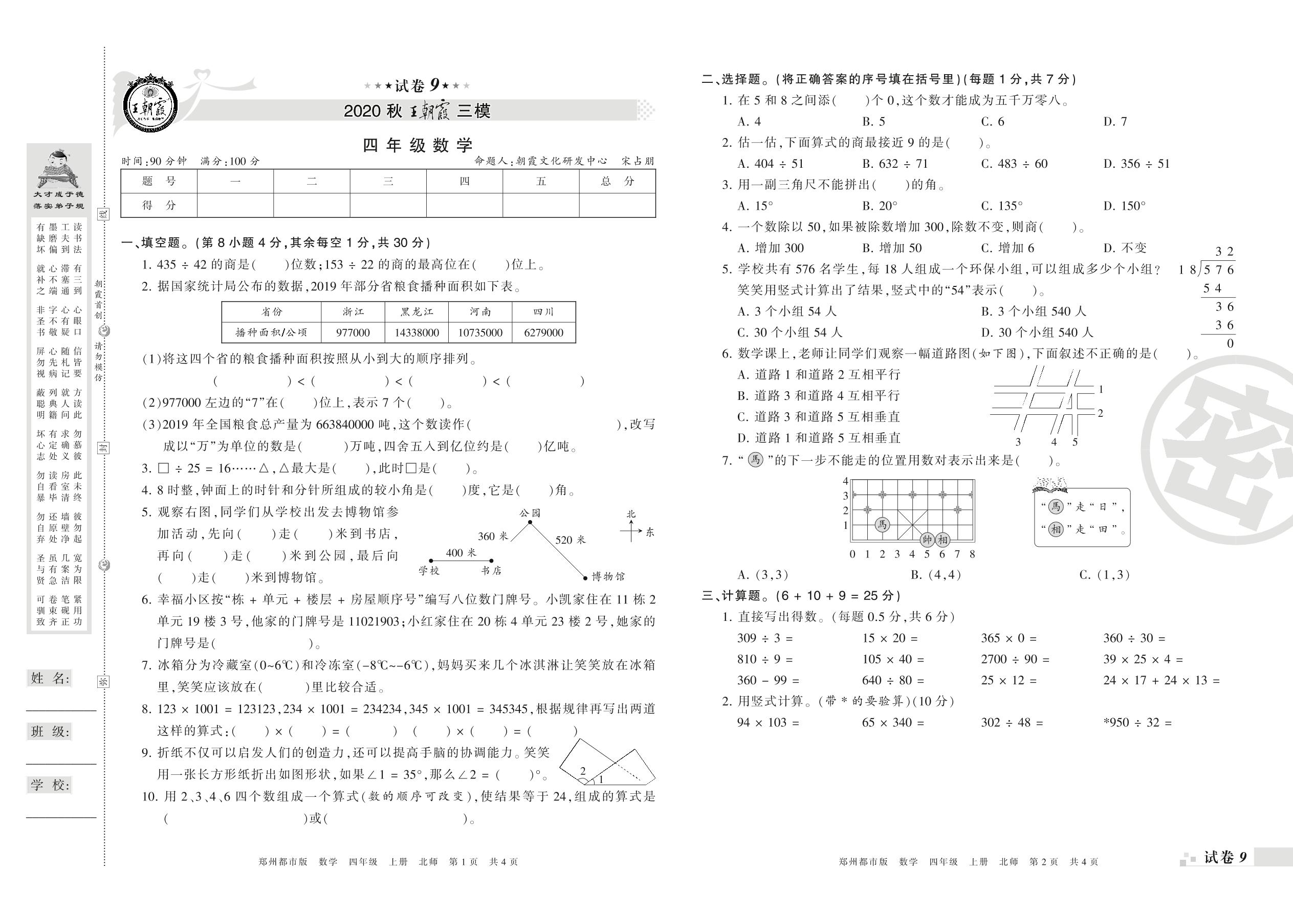 王朝霞期末模拟卷四年级上册数学(北师版)_R210804141709【9】