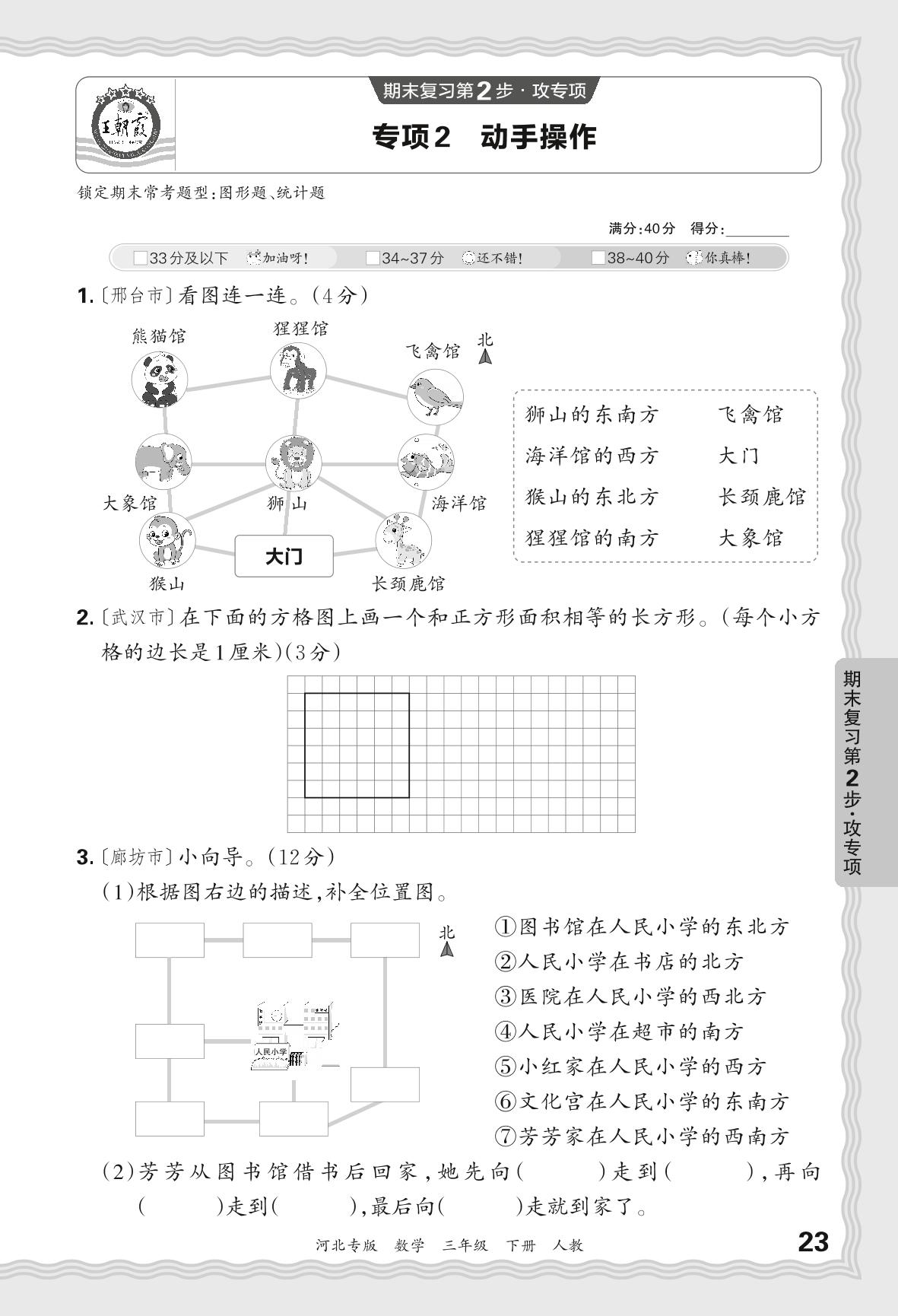 2024春下册三年级数学人教版 期末专项卷河北版·动手操作【2】