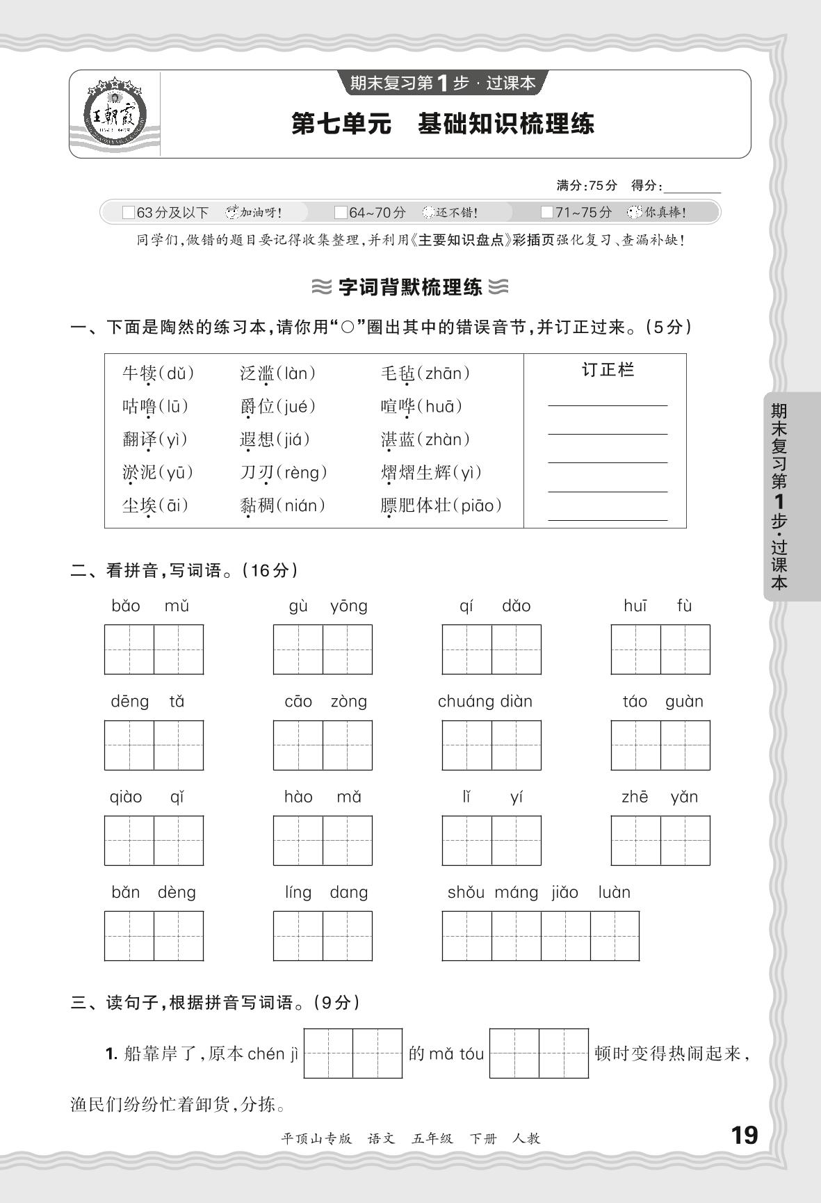 2024春下册五年级语文人教版 期末过课本平顶山版·第七单元 基础知识梳理练