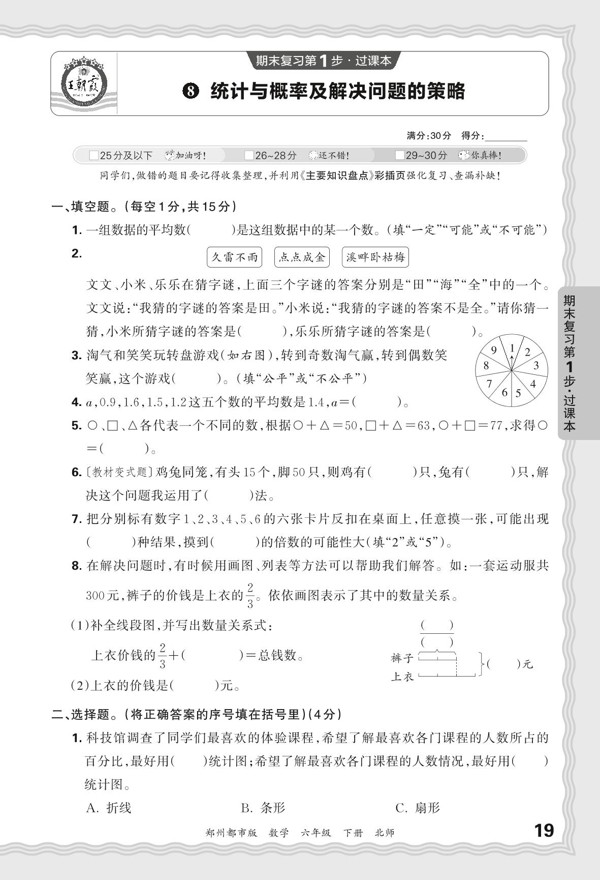 2024春下册六年级数学北师版 期末过课本郑州版·统计与概率及解决问题的策略