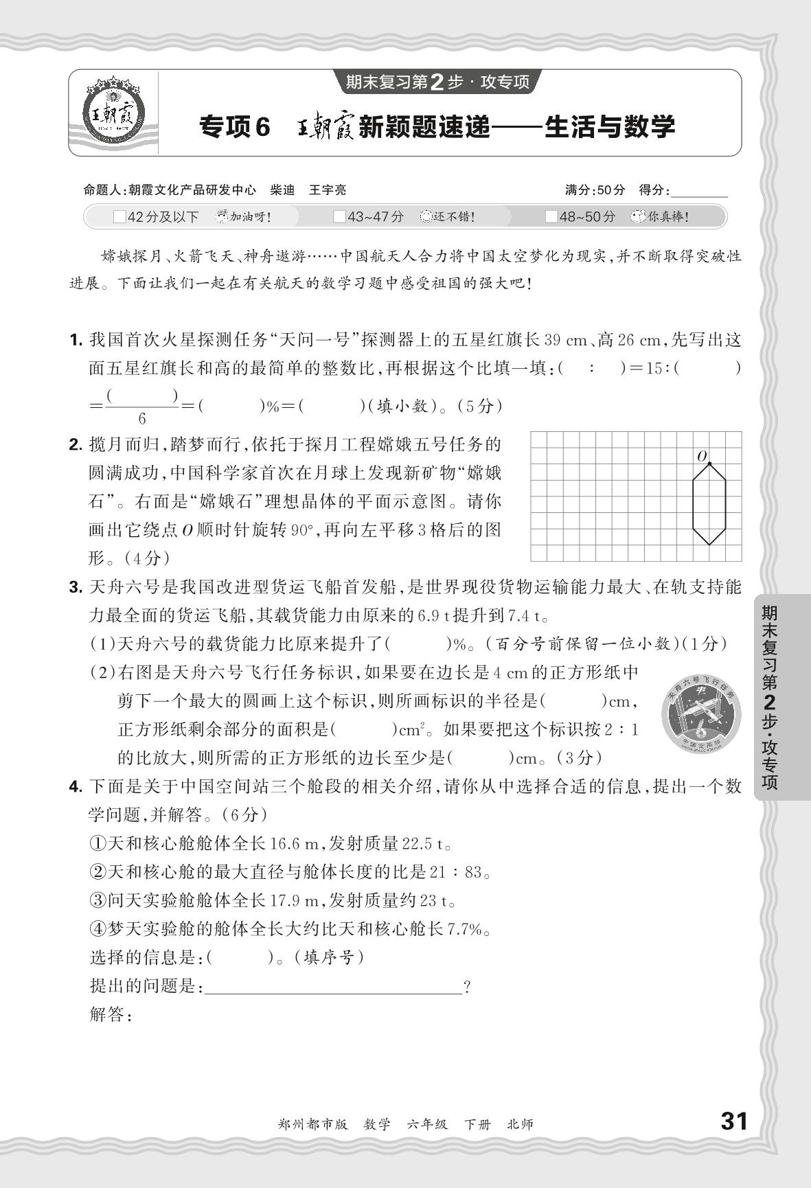 2024春下册六年级数学北师版 期末专项卷郑州版·王朝霞新颖题速递——生活与数学【6】