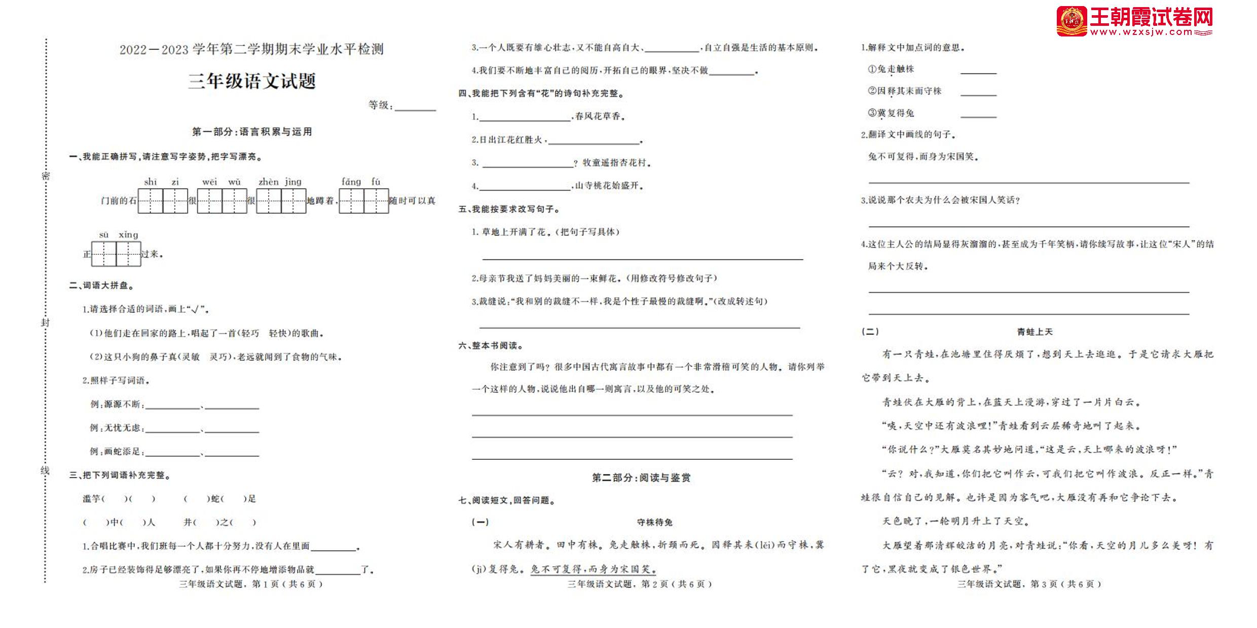 三年级语文人教版下册期末卷