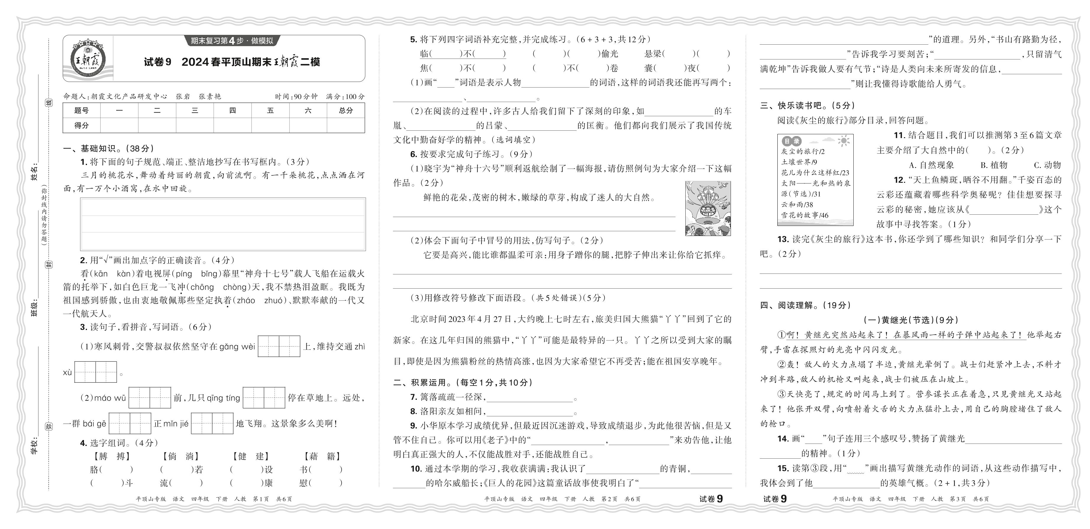 2024春下册四年级语文人教版 河南平顶山期末王朝霞二模【9】