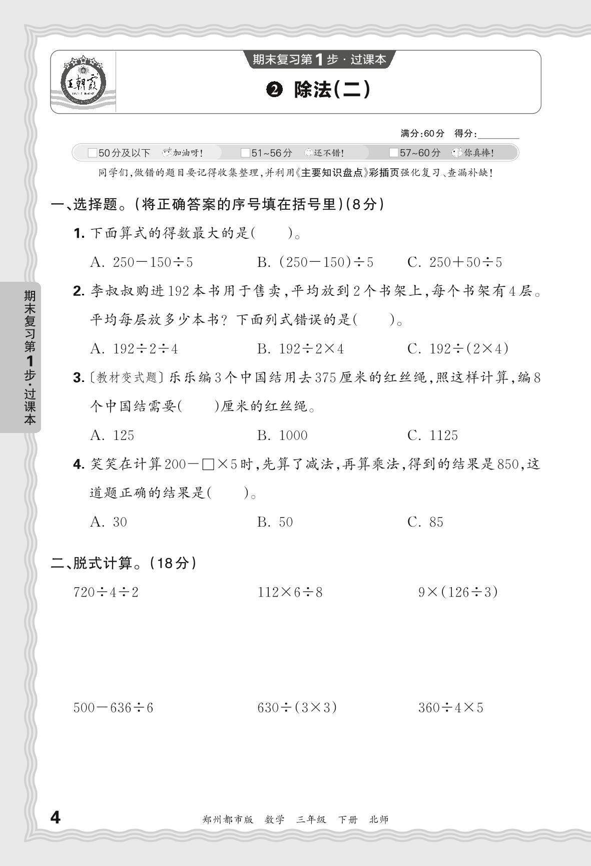 2024春下册三年级数学北师版 期末过课本郑州版·除法(二)【2】