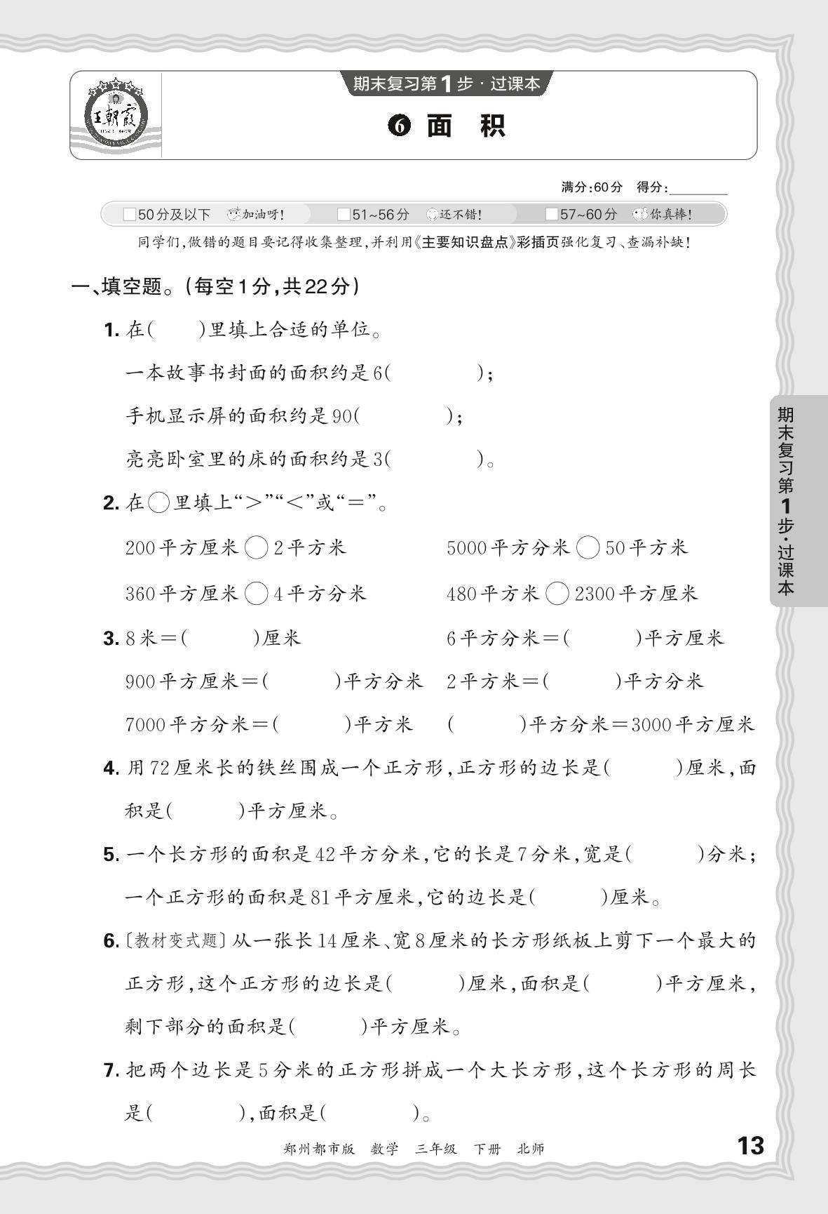 2024春下册三年级数学北师版 期末过课本郑州版·面积【6】