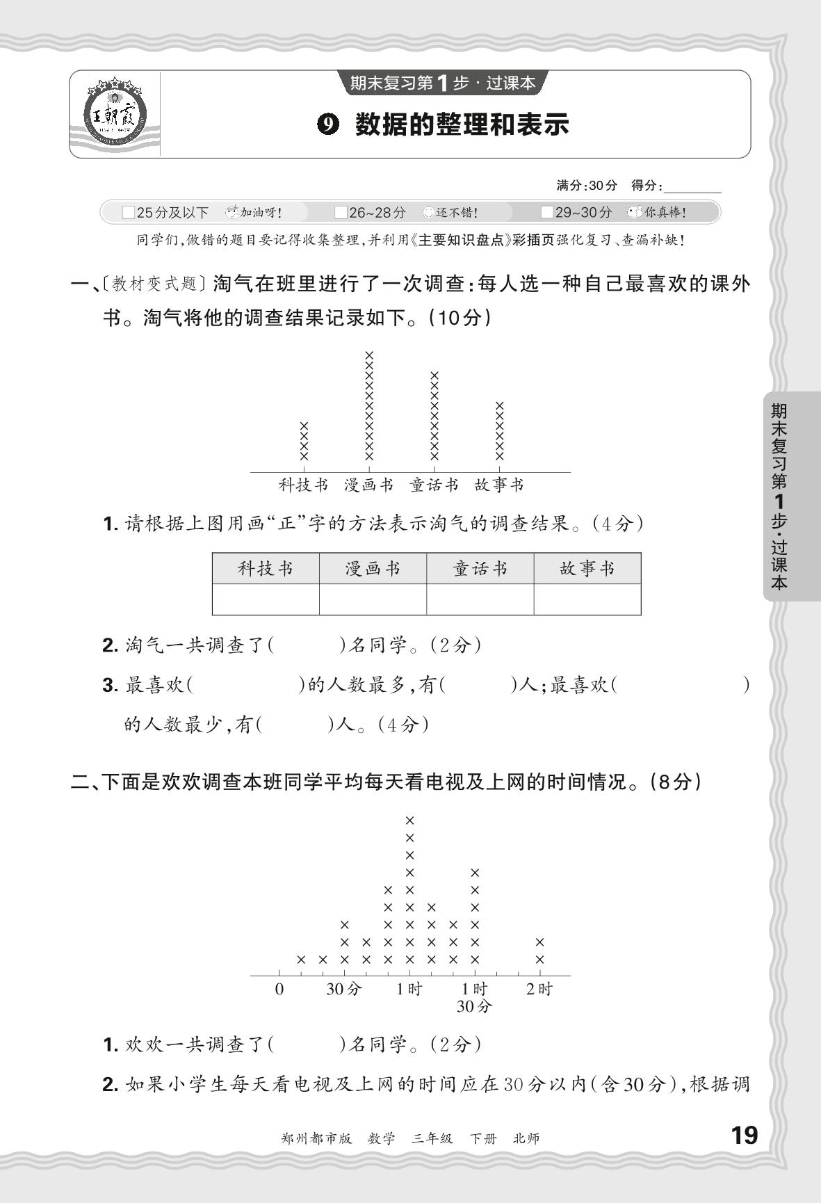 2024春下册三年级数学北师版 期末过课本郑州版·数据的整理和表示【9】