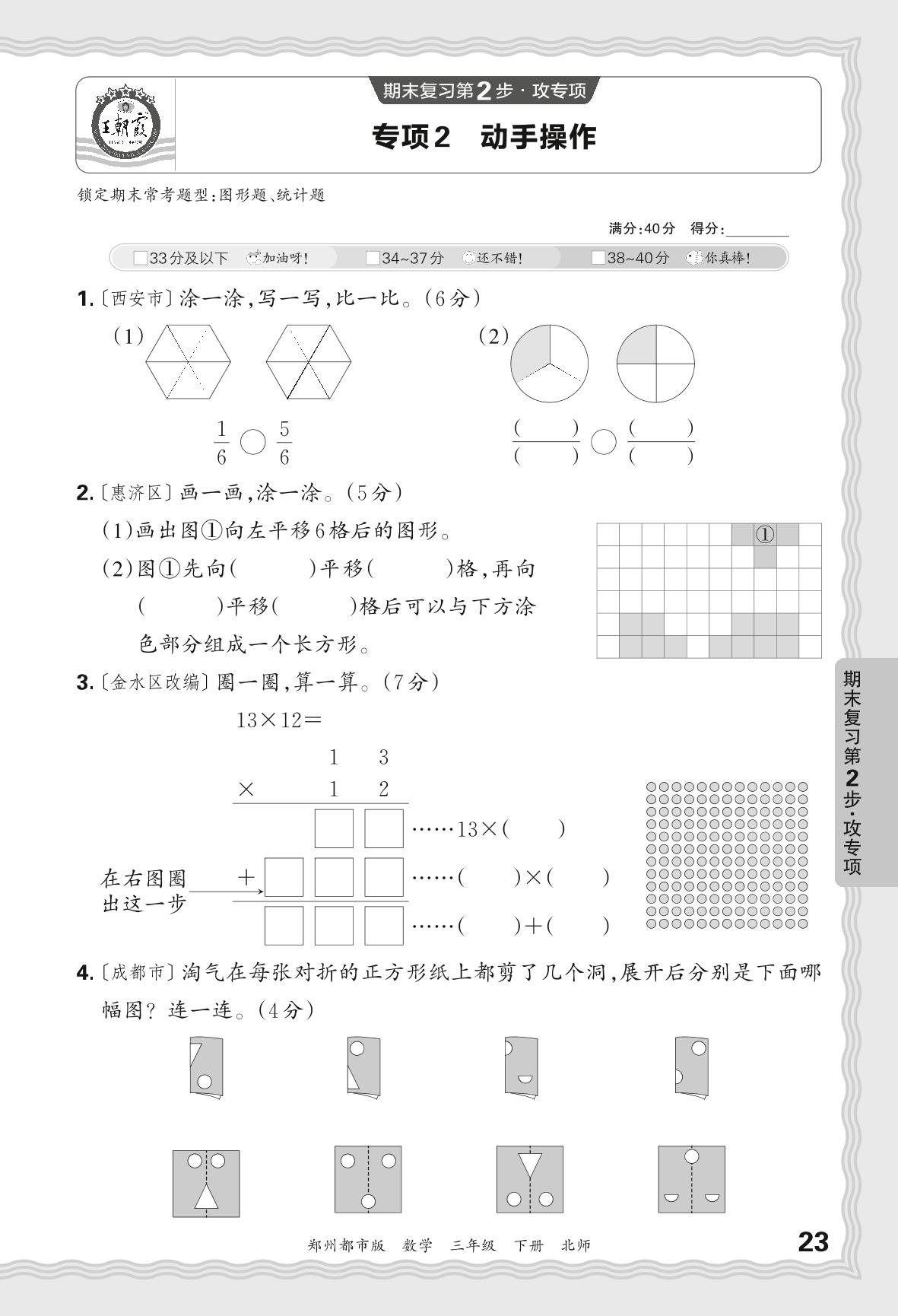 2024春下册三年级数学北师版 期末专项卷郑州版·动手操作【2】
