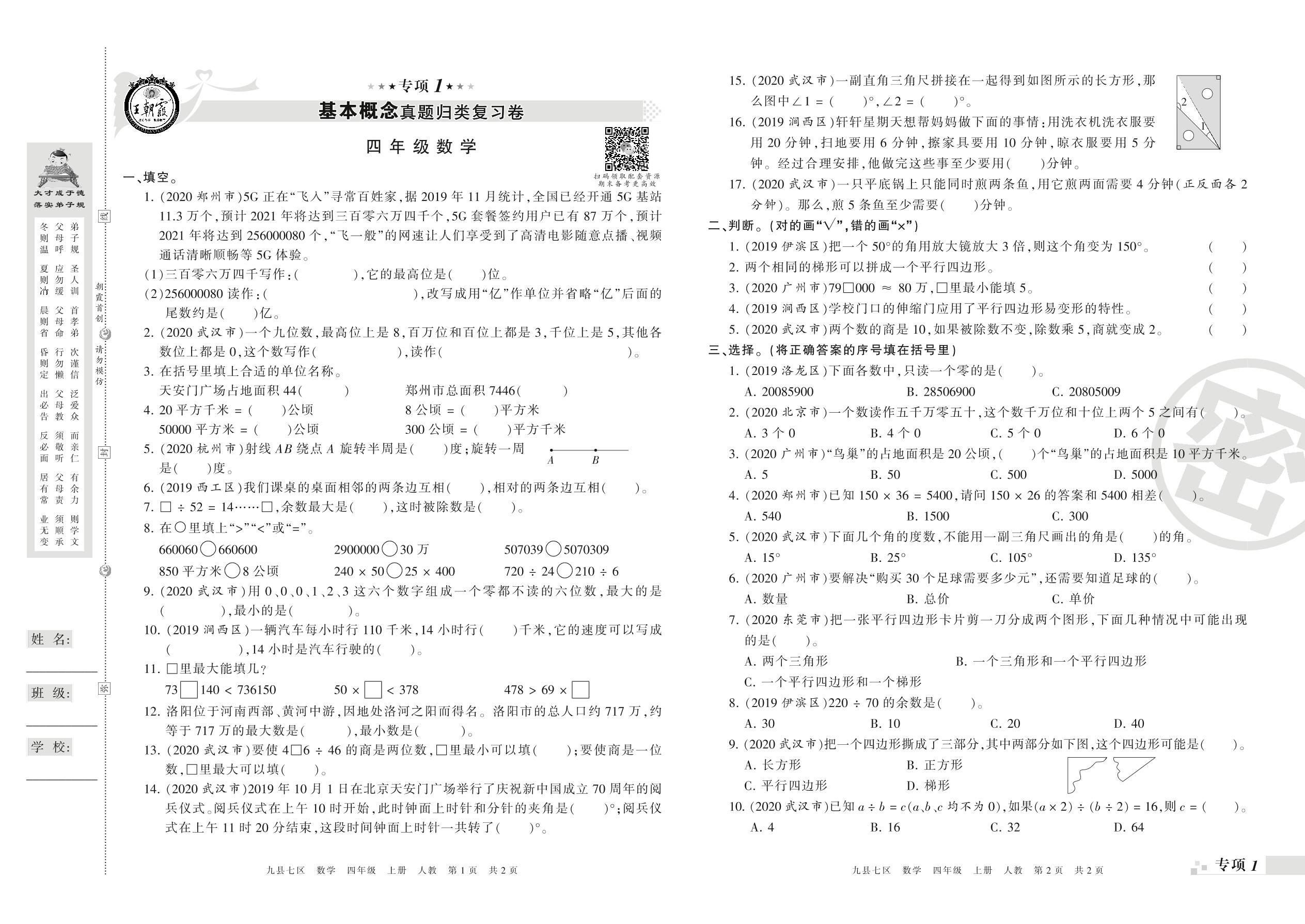 王朝霞期末专项卷——基本概念、计算真题归类复习四年级上册数学(人教版)_R210804141827【0】