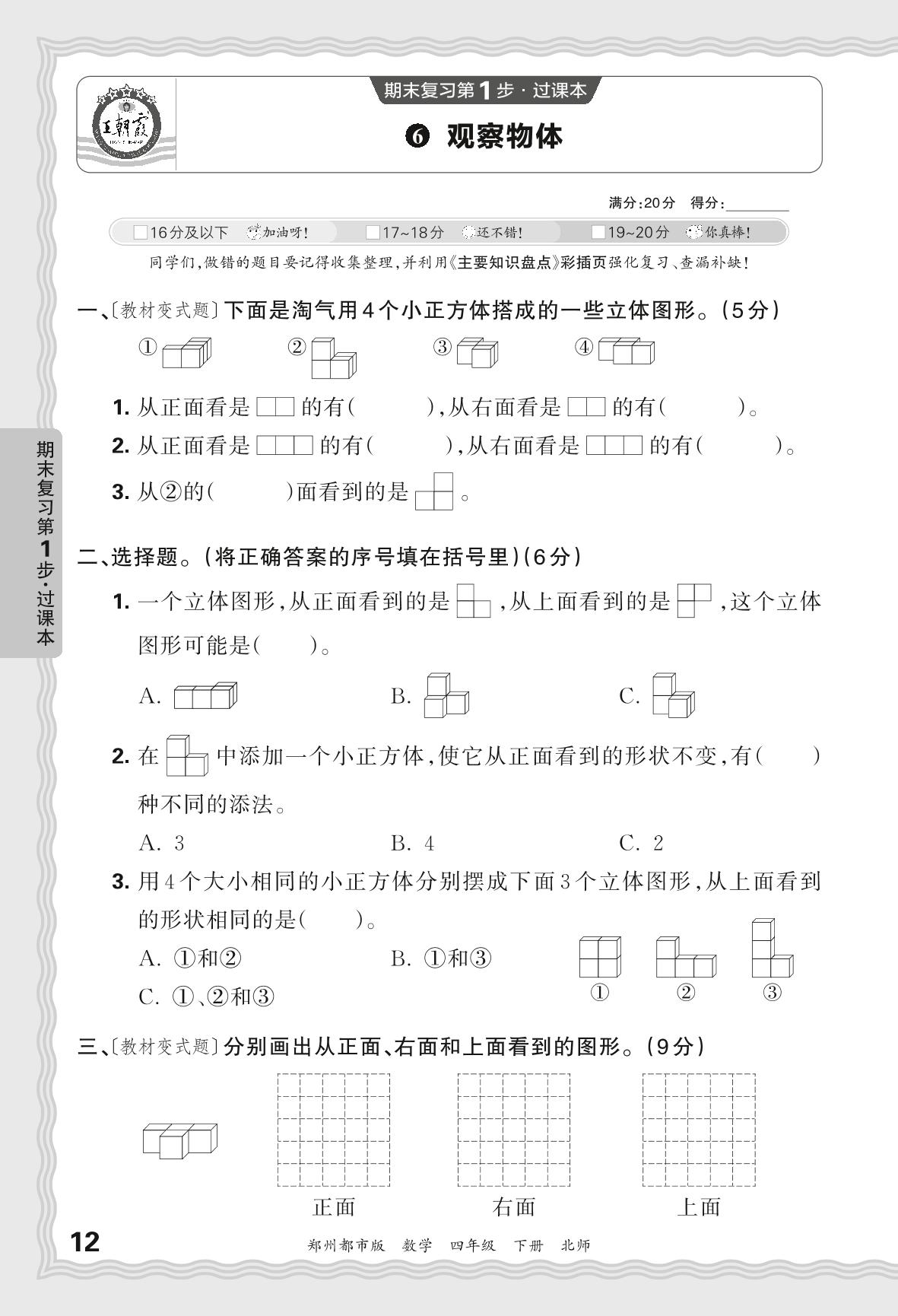 2024春下册四年级数学北师版 期末过课本郑州版·观察物体【6】