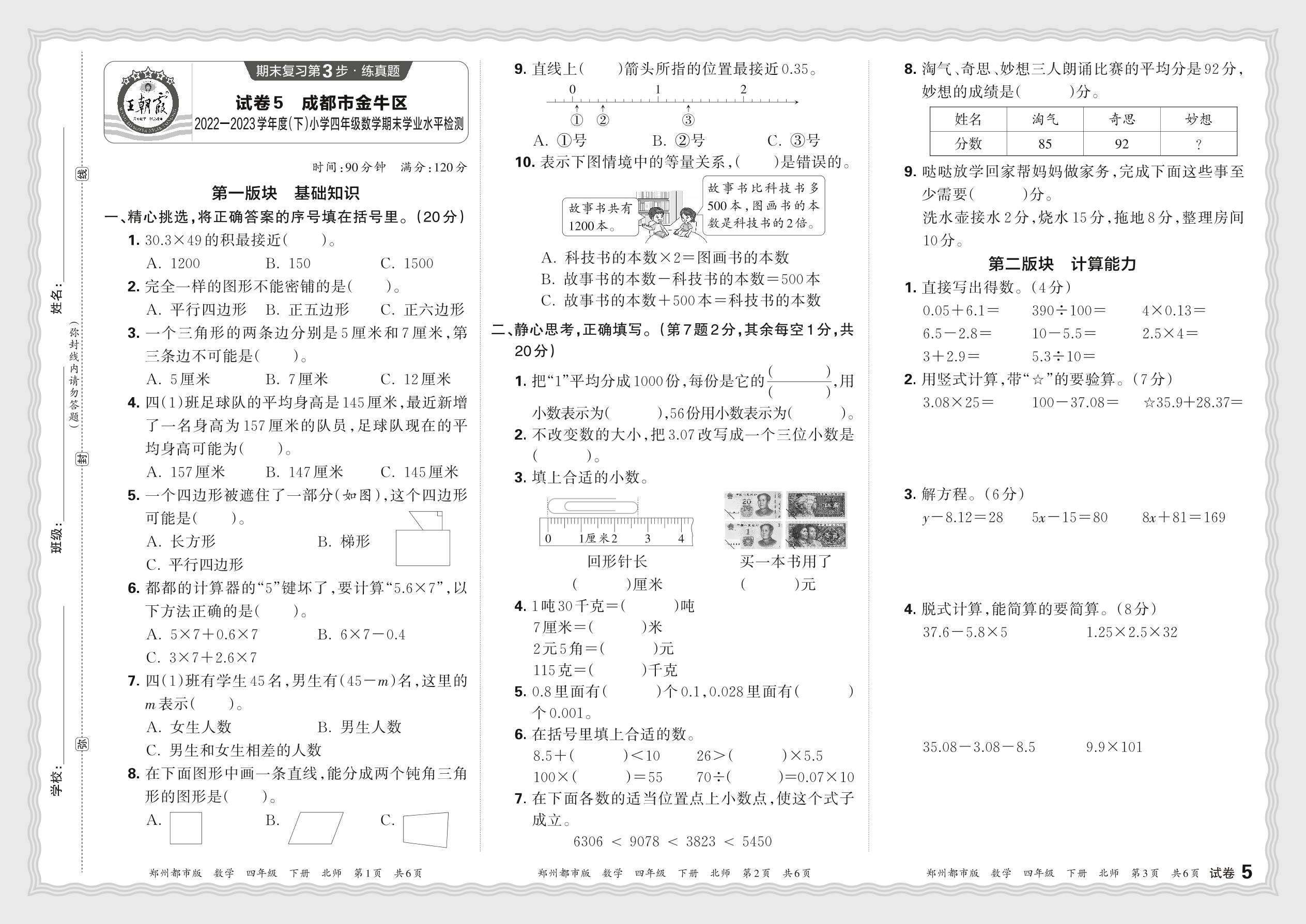 四川省成都市金牛区2022—2023学年度(下)小学四年级数学期末学业水平检测(北师版)【5】