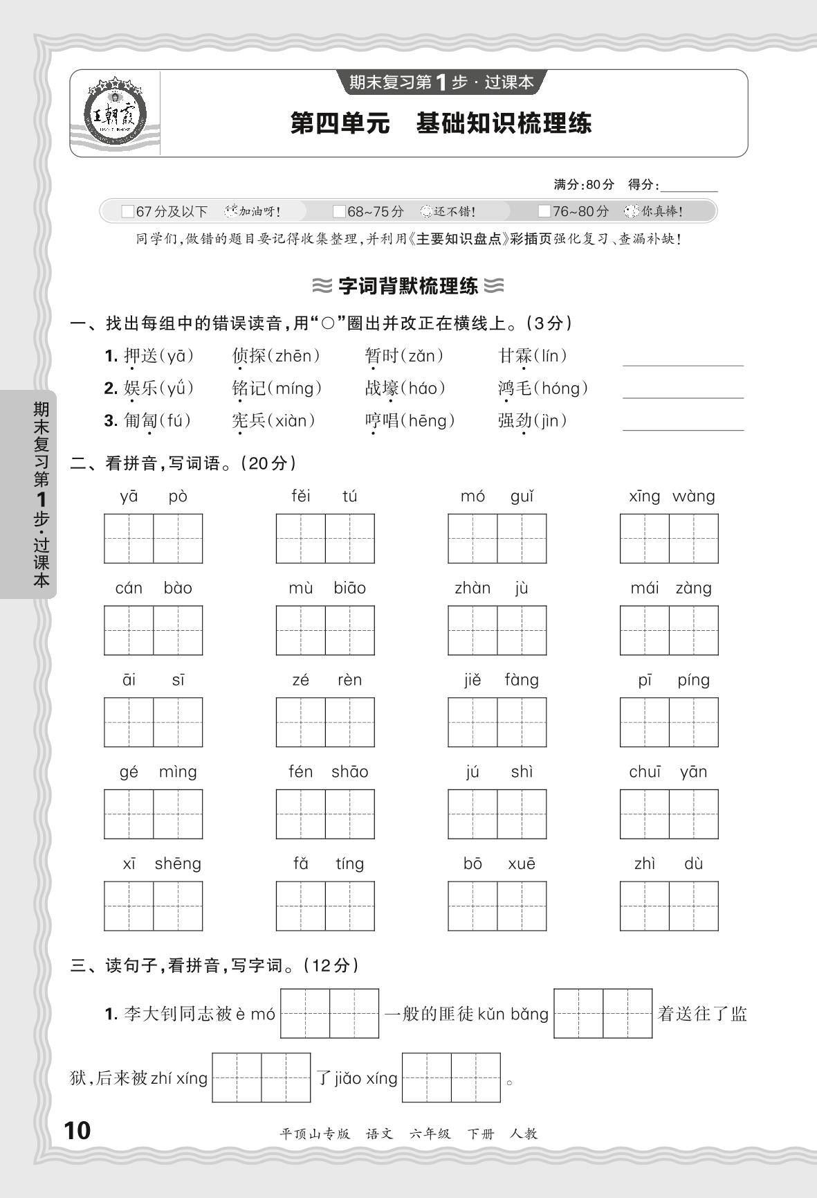 2024春下册六年级语文人教版 期末过课本平顶山版·第四单元 基础知识梳理练