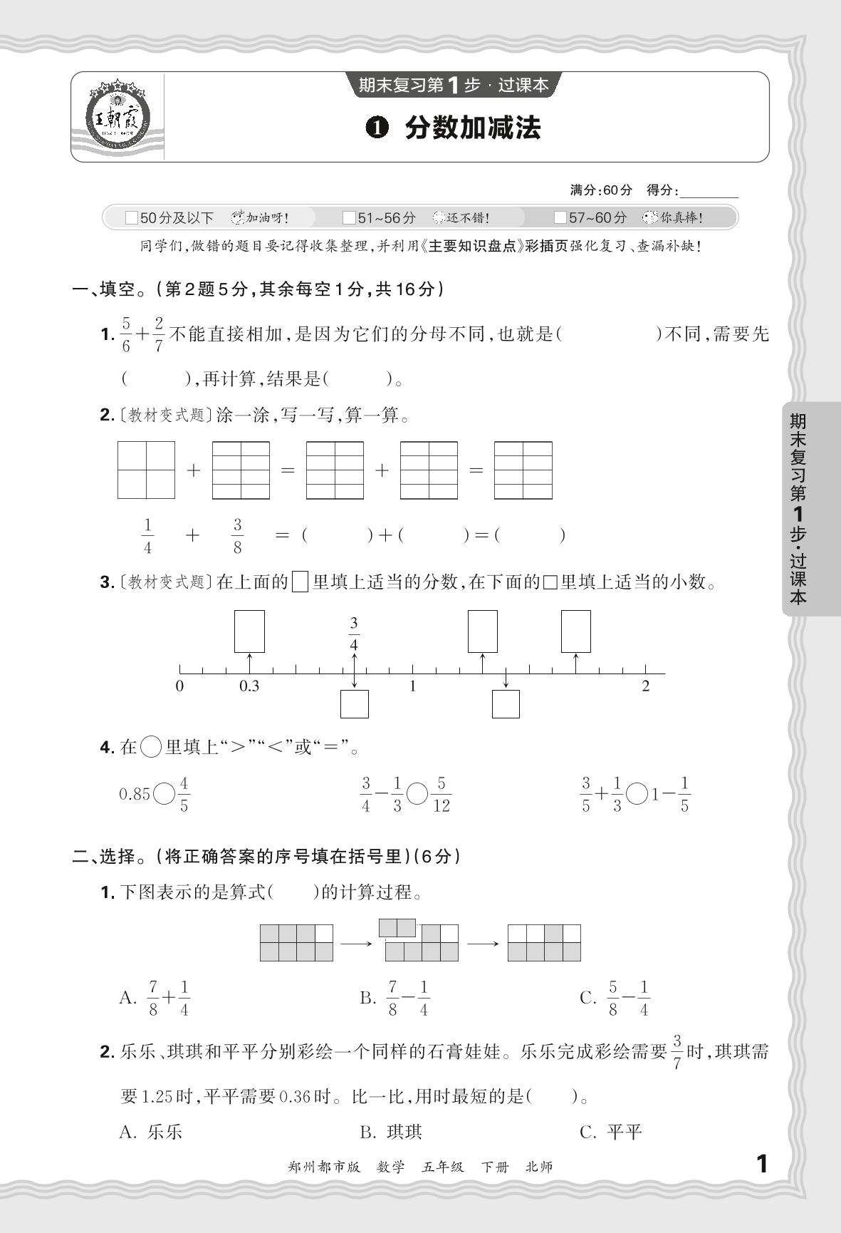 2024春下册五年级数学北师版 期末过课本郑州版·分数加减法【1】