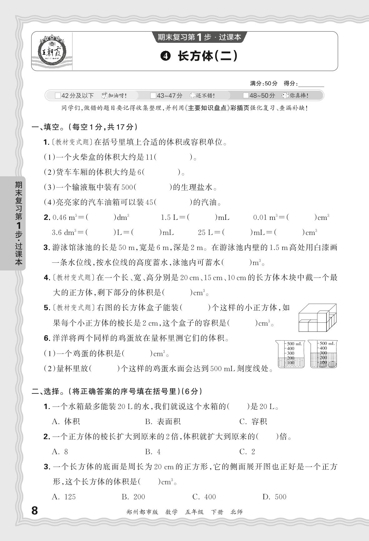 2024春下册五年级数学北师版 期末过课本郑州版·长方体(二)【4】