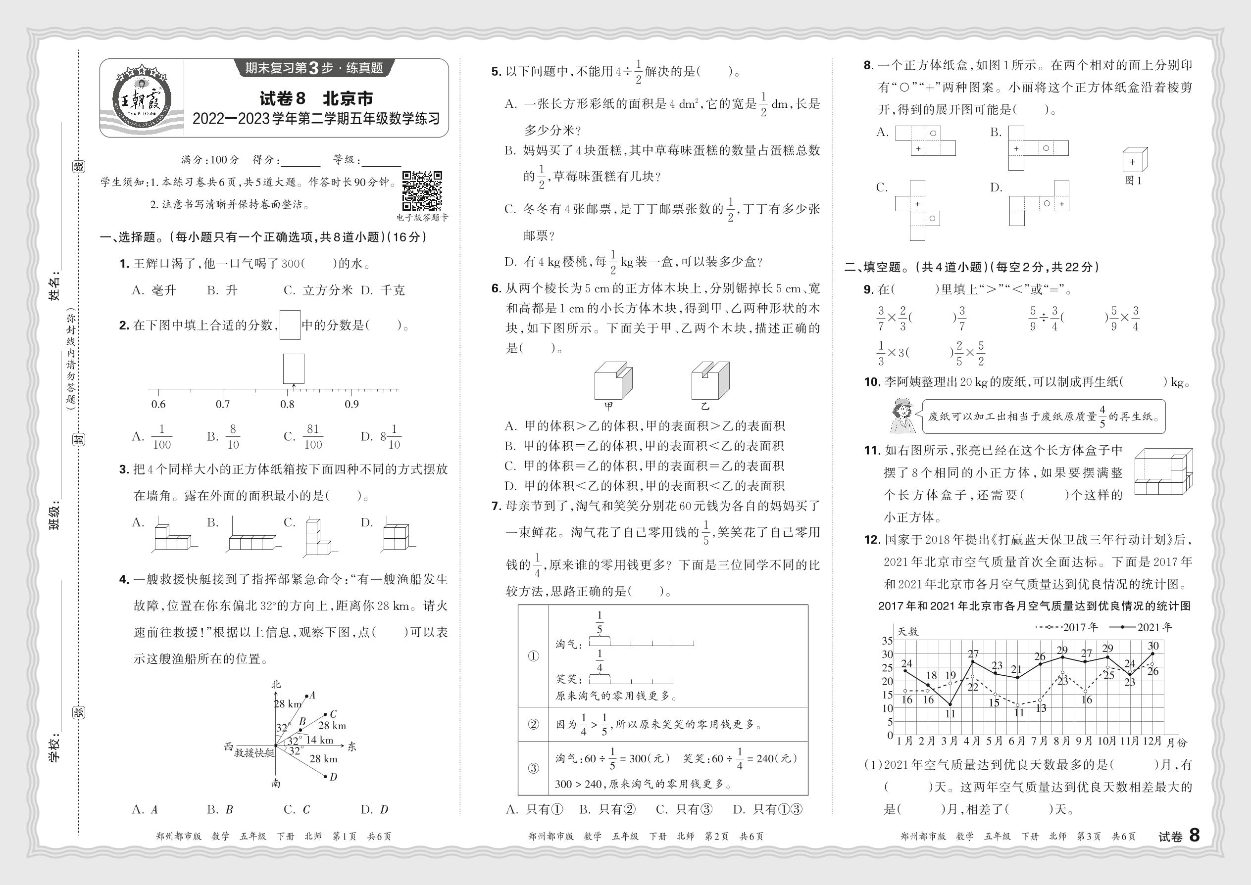 北京市2022—2023学年第二学期五年级数学期末练习(北师版)【8】