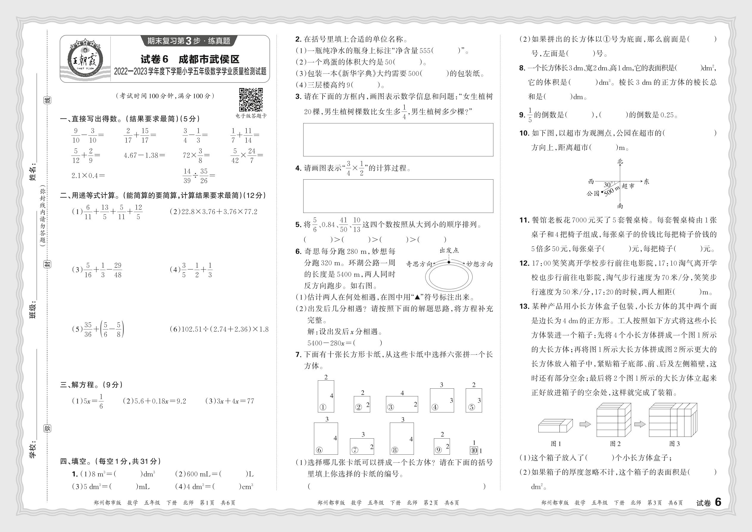 四川省成都市武侯区2022—2023学年度下期五年级数学学业质量检测试题(北师版)【6】