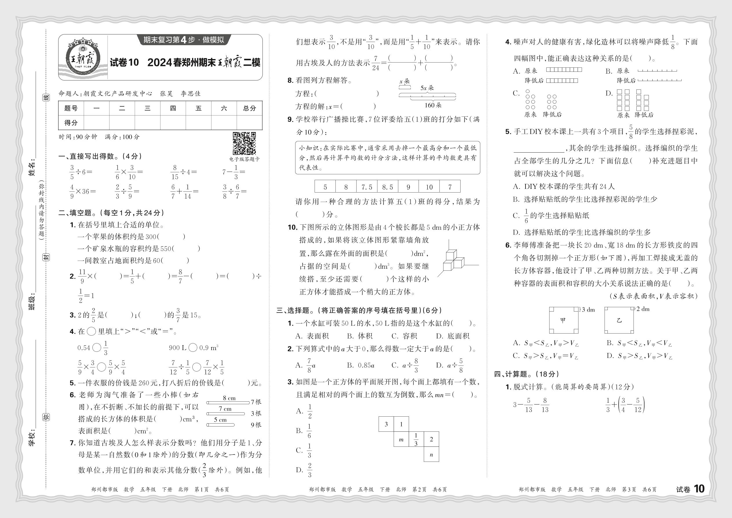 2024春下册五年级数学北师版 河南郑州期末王朝霞二模