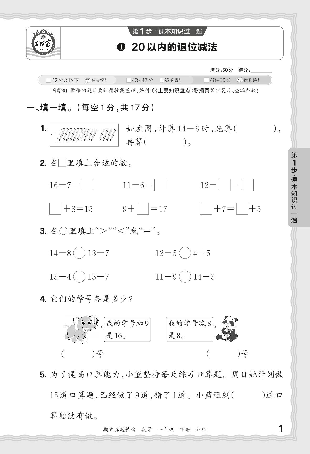 2024春下册一年级数学北师版 期末过课本郑州版·20以内的退位减法【1】