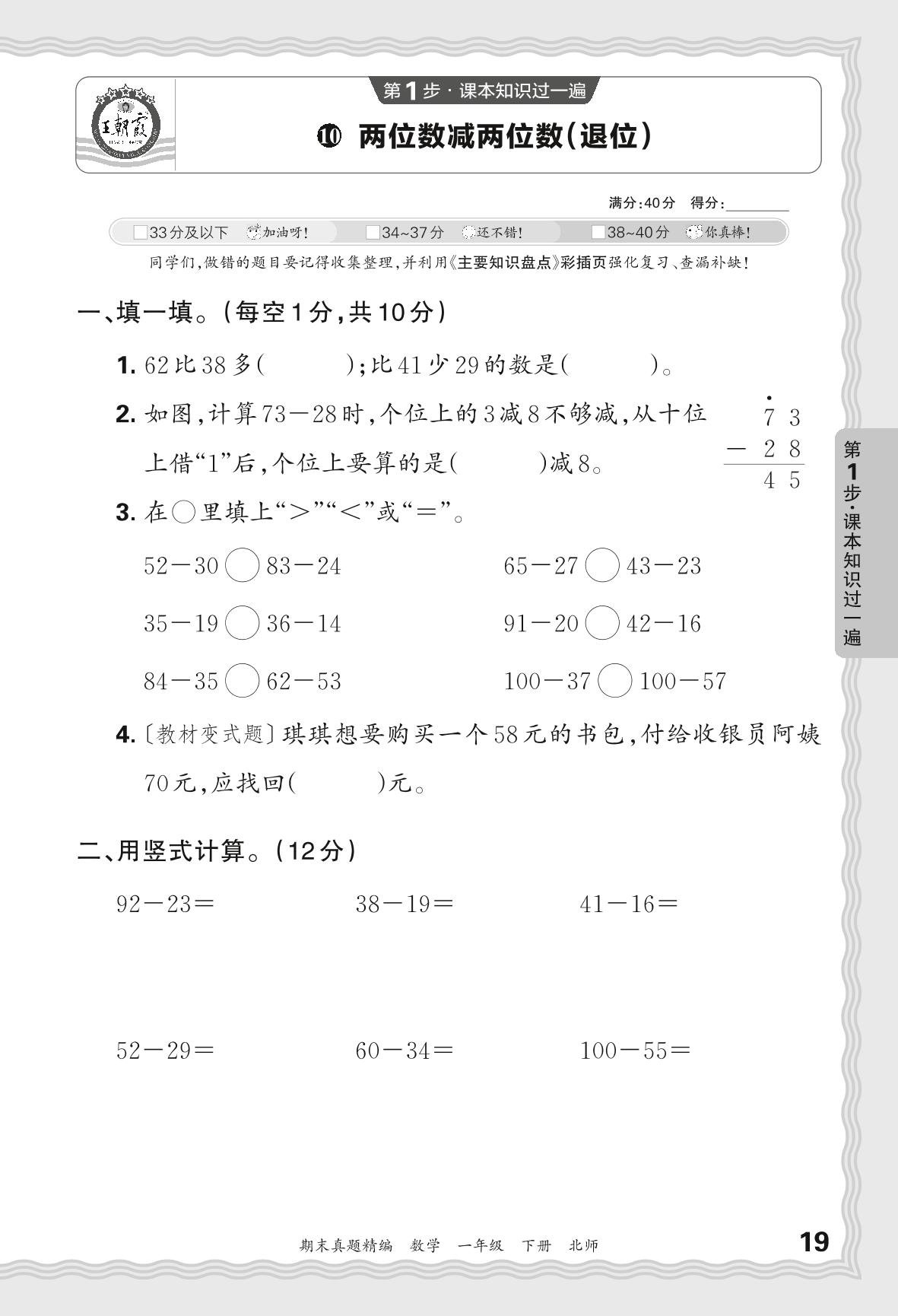 2024春下册一年级数学北师版 期末过课本郑州版·两位数减两位数(退位)【10】