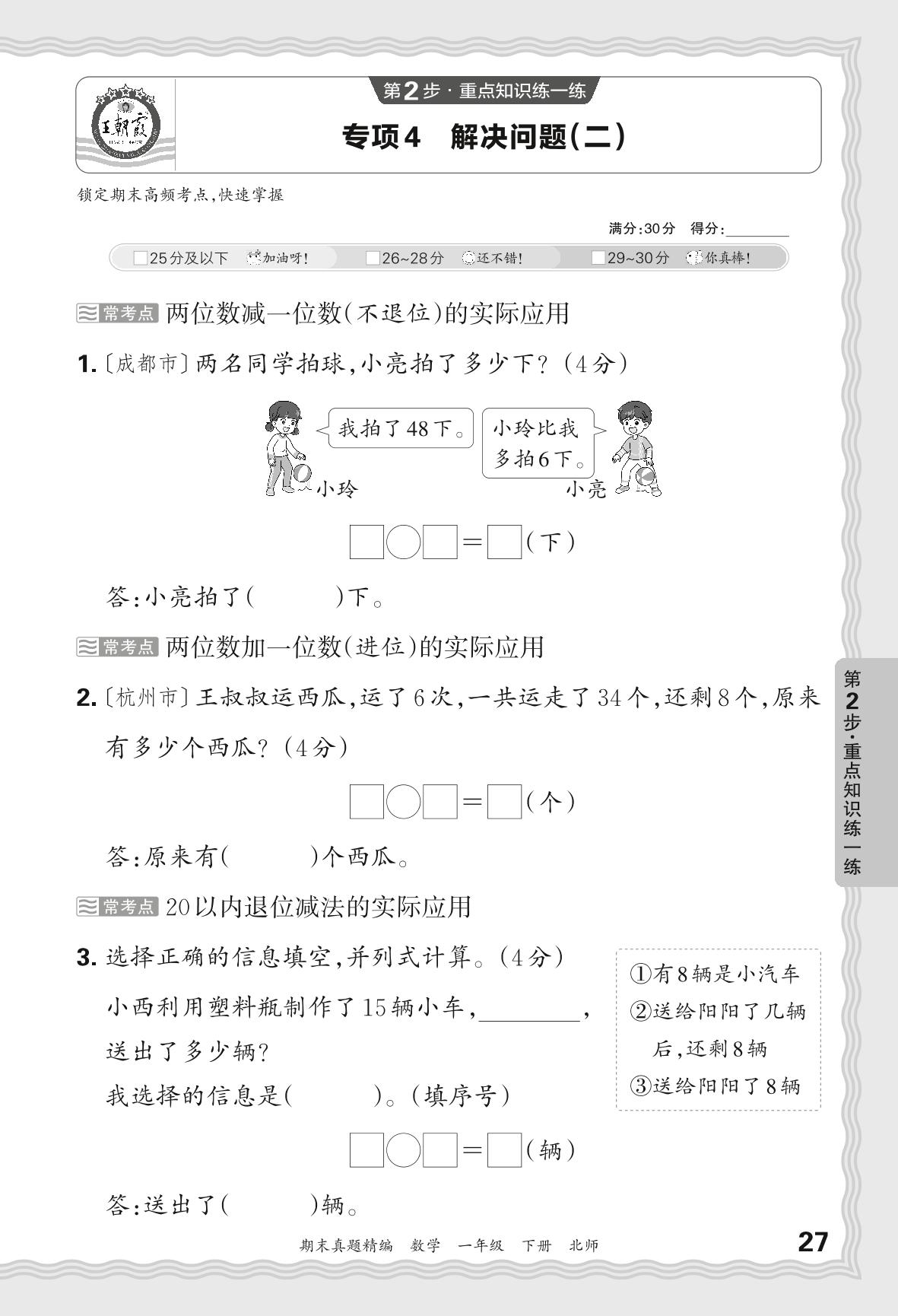 2024春下册一年级数学北师版 期末专项卷郑州版·解决问题(二)【4】