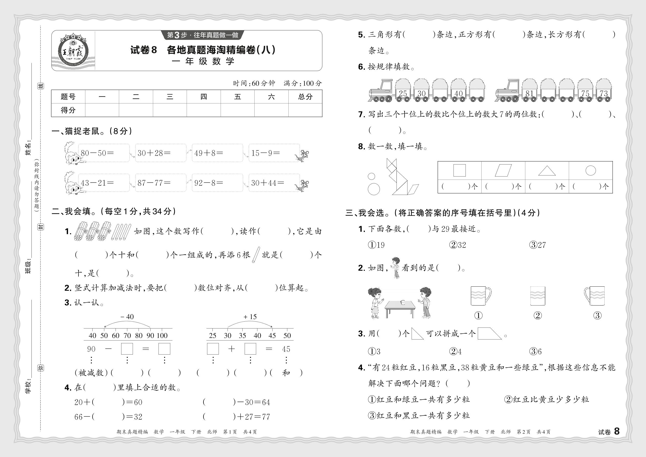 2024春下册一年级数学北师版 各地真题海淘精编卷(八)