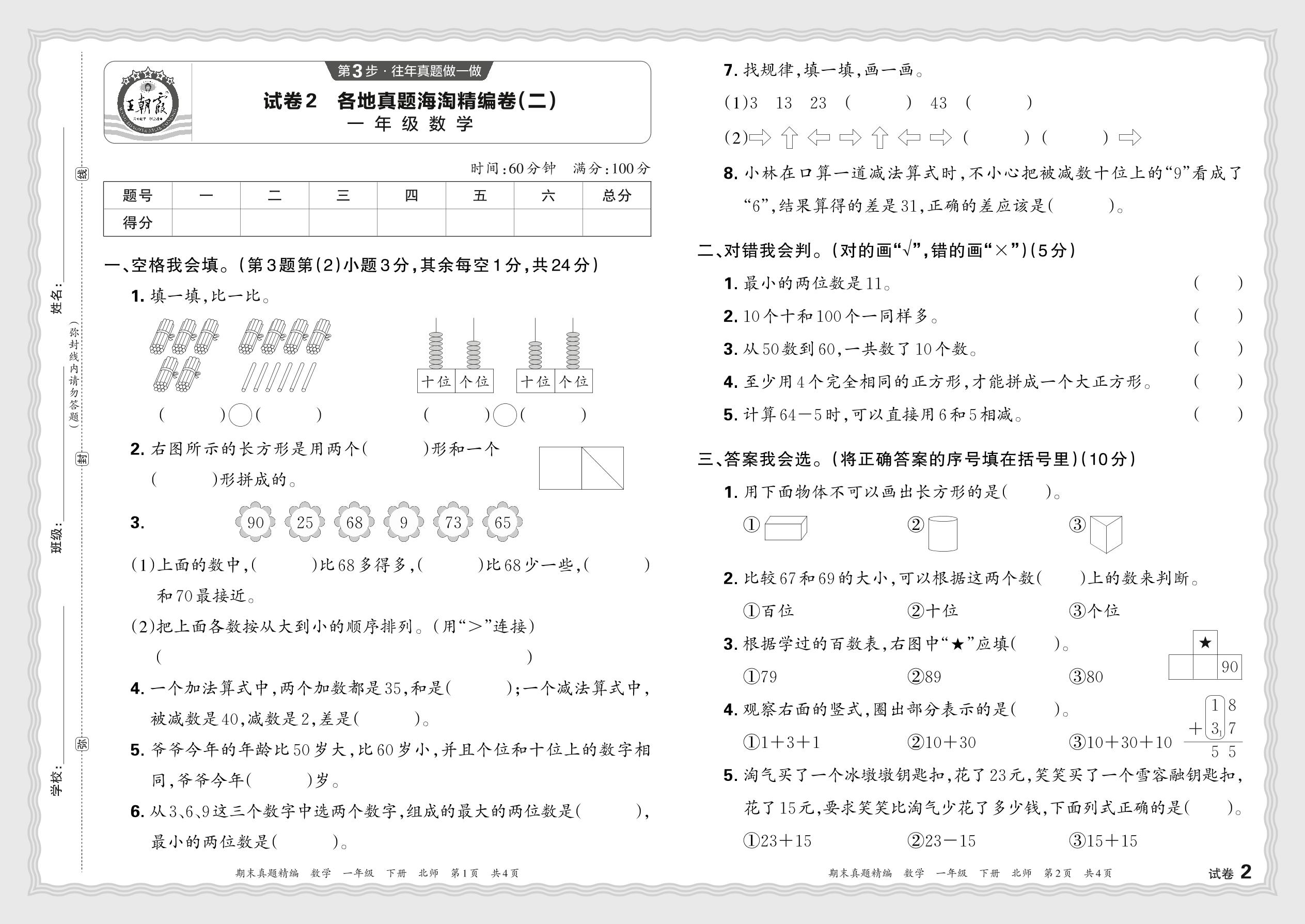 2024春下册一年级数学北师版 各地真题海淘精编卷(二)
