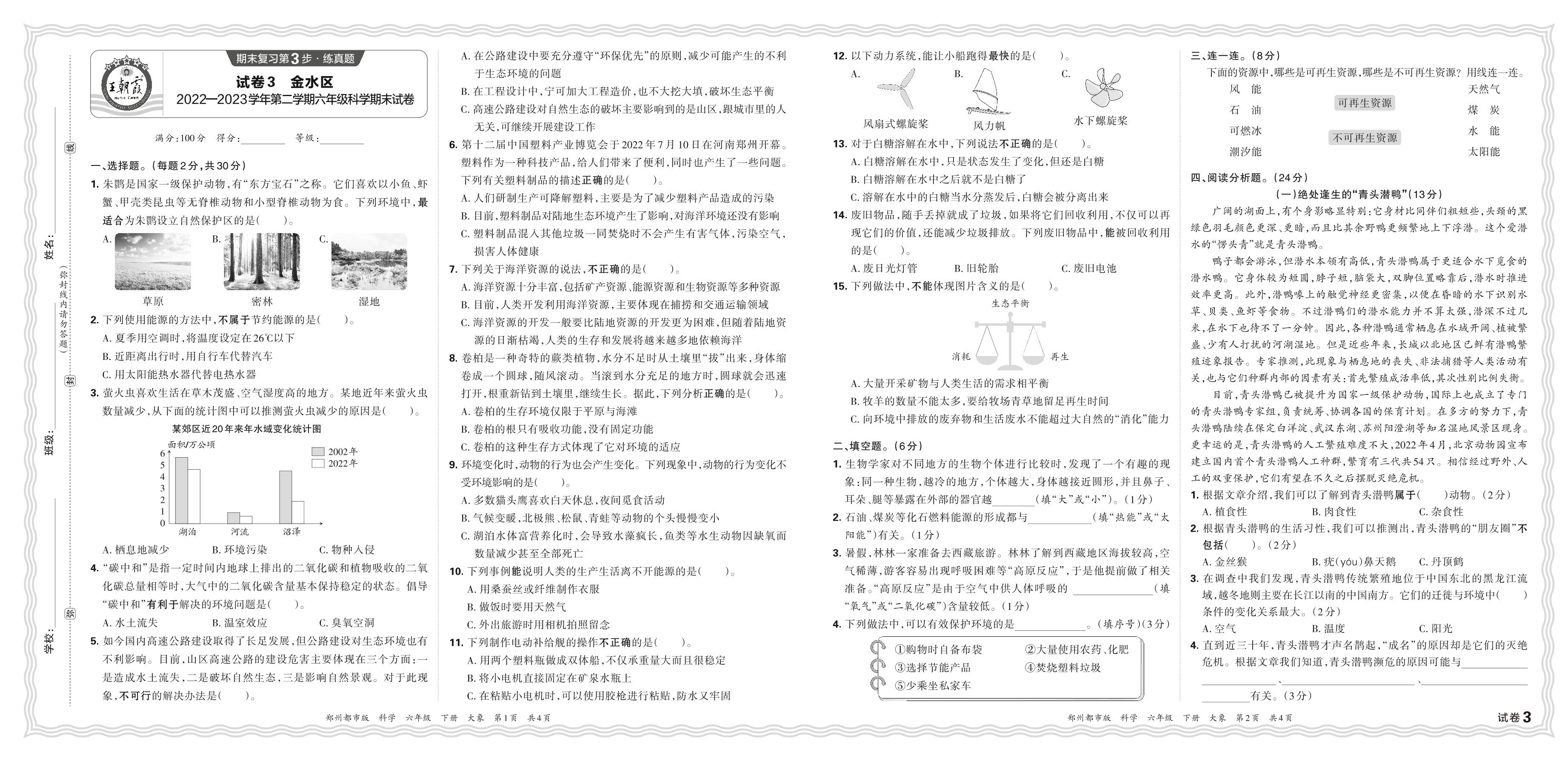 河南省郑州市金水区2022—2023学年第二学期六年级科学期末试卷(大象版)【3】
