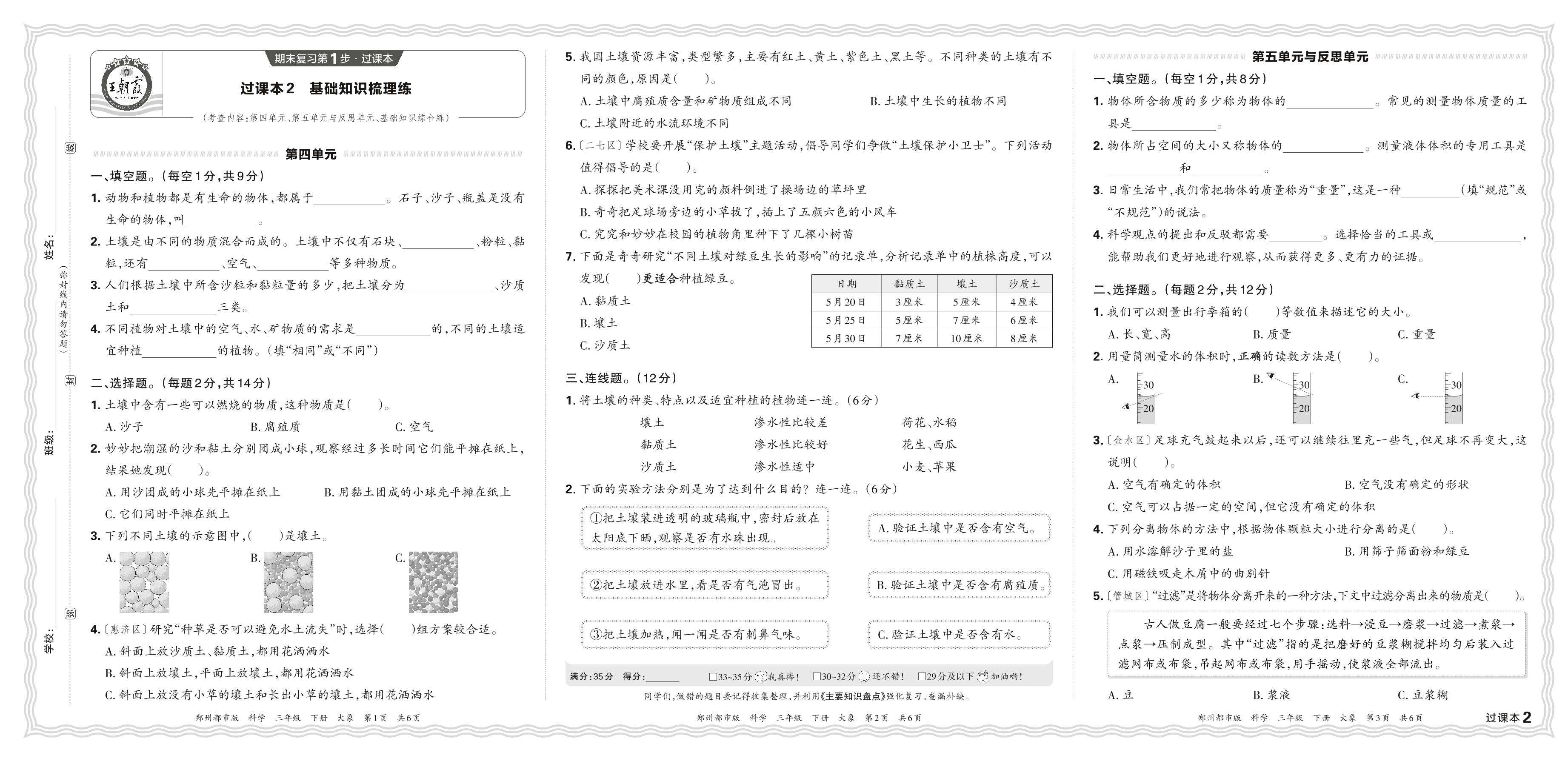 2024春下册三年级科学大象版 期末过课本郑州版·第四单元至反思单元基础知识梳理练、基础知识综合练