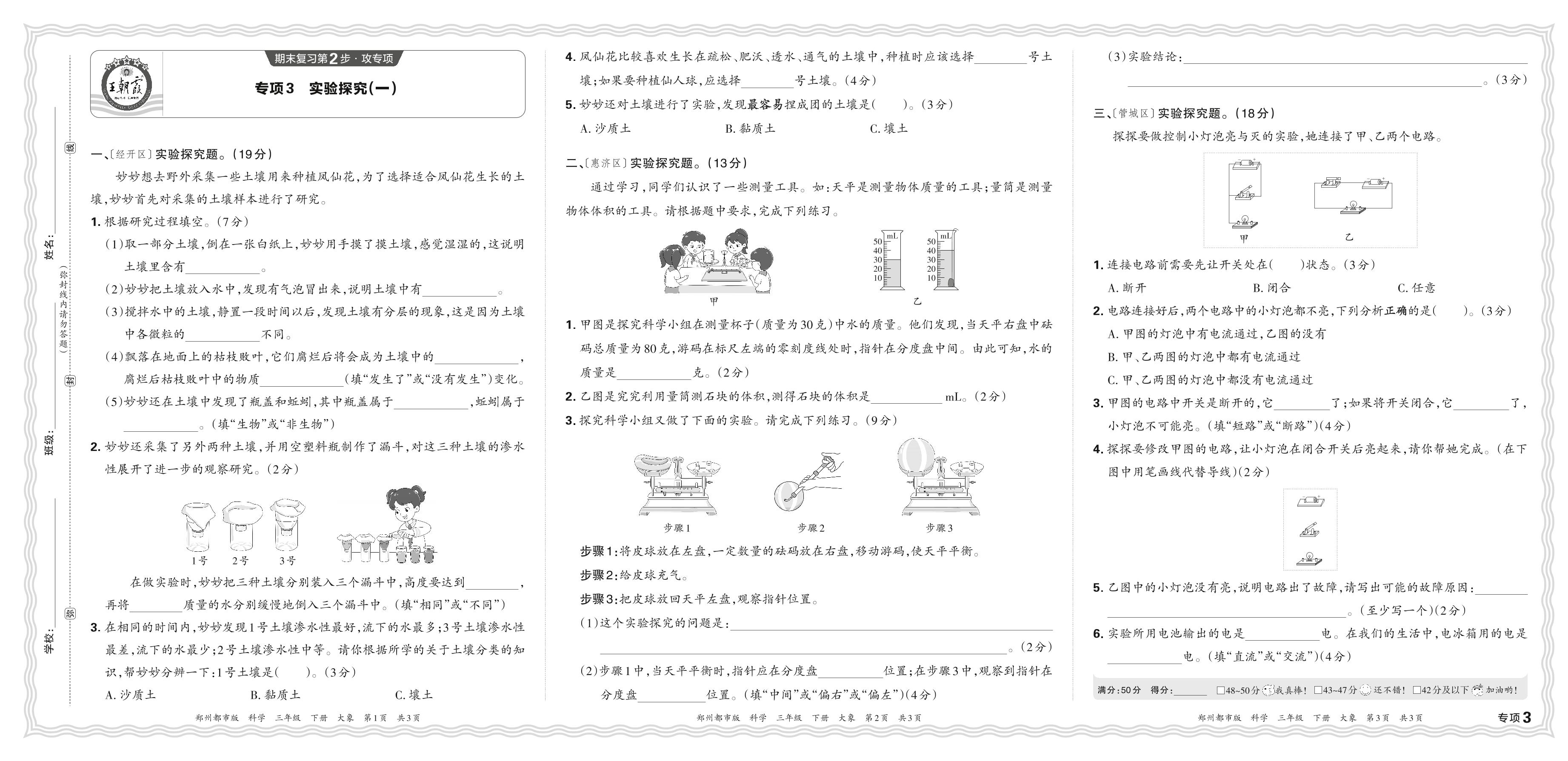 2024春下册三年级科学大象版 期末专项卷郑州版·实验探究(一)【3】
